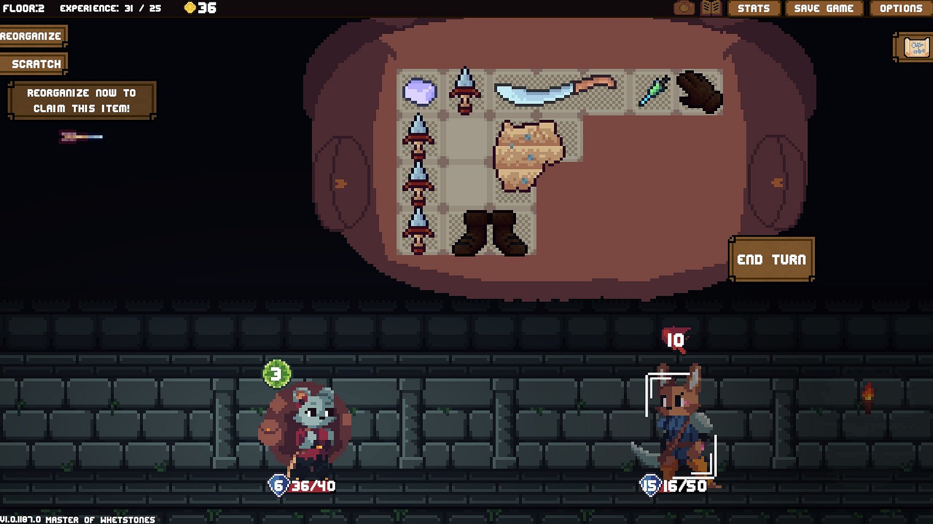 Die Kämpfe selbst laufen rundenbasiert ab: Angriffe, Blocks, Zauber und Effekte werden über die platzierten Gegenstände im Rucksack ausgelöst. Dabei spielt nicht nur die Art des Gegenstands eine Rolle, sondern eben auch seine aktuelle Position. Durch kluges Umräumen zwischen den Kämpfen entstehen Synergien, welche die aktuelle Mission immer wieder in neue Richtungen lenken können.