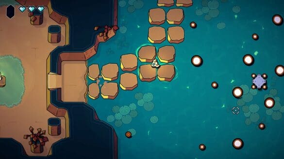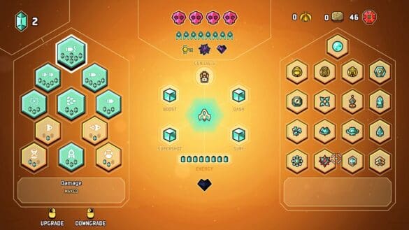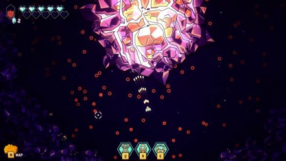 Im Spiel übernimmt man die Kontrolle über ein kleines Raumschiff-Wesen, das sich relativ frei durch eine offene 2D-Welt bewegt. „Relativ“, da sich erst mit zunehmenden Fähigkeiten immer weitere Bereiche erschließen. Der zentrale Gameplay-Loop besteht aus dem Erkunden der Welt, dem Kämpfen gegen Gegnerwellen in Bullet-Hell-Manier und dem Freischalten neuer Fähigkeiten. Diese Fähigkeiten – etwa ein Boost, zusätzliche Feuerkraft oder Schilde – erleichtern das Leben und eröffnen neue Wege im Spiel und motivieren dazu, alte Gebiete erneut aufzusuchen.