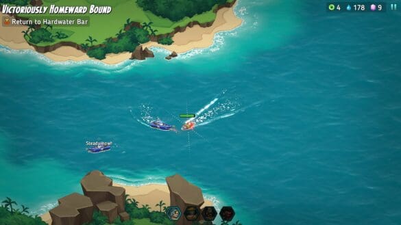 Auch außerhalb der Kämpfe gibt es mehr zu tun. Zwischen den Missionen wird das eigene Schiff (eigentlich U-Boot) durch ein kleines, aber erkundbares Meergebiet gesteuert, in dem Ressourcen gesammelt, Händler aufgesucht und Nebenmissionen entdeckt werden. Und – ein wenig fühlt man sich an Sid Meier’s Pirates! erinnert –gegnerische Schiffe dürfen bekämpft, versenkt und geplündert werden.