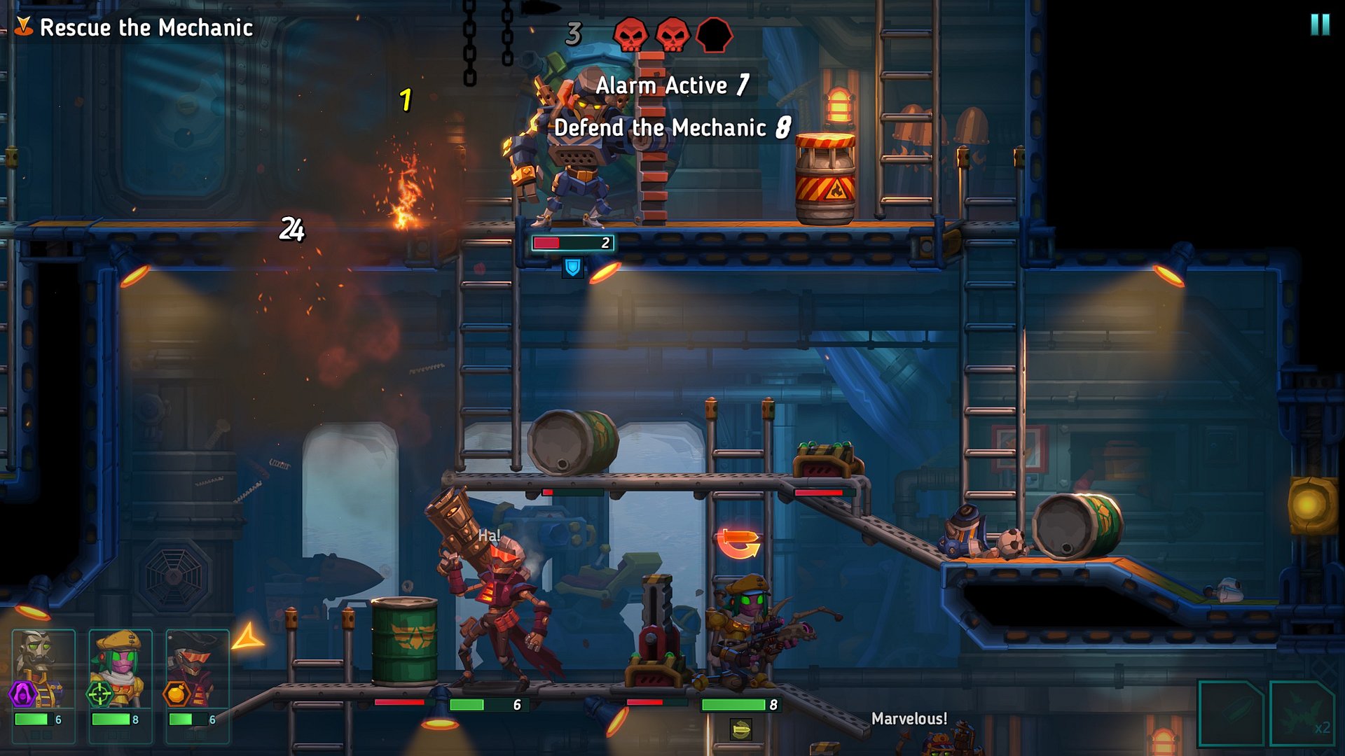 SteamWorld Heist II baut die bewährte Formel des ersten Teils gekonnt aus. Im Zentrum steht erneut rundenbasiertes Taktik-Gameplay mit direkter Zielmechanik, diesmal aber eingebettet in eine umfangreichere Welt, die mehr Erkundungsmöglichkeiten und spielerische Vielfalt bietet. Gleichzeitig bleibt das Spiel seiner charmanten Steampunk-Ästhetik und seinem handgezeichneten 2D-Stil treu.
