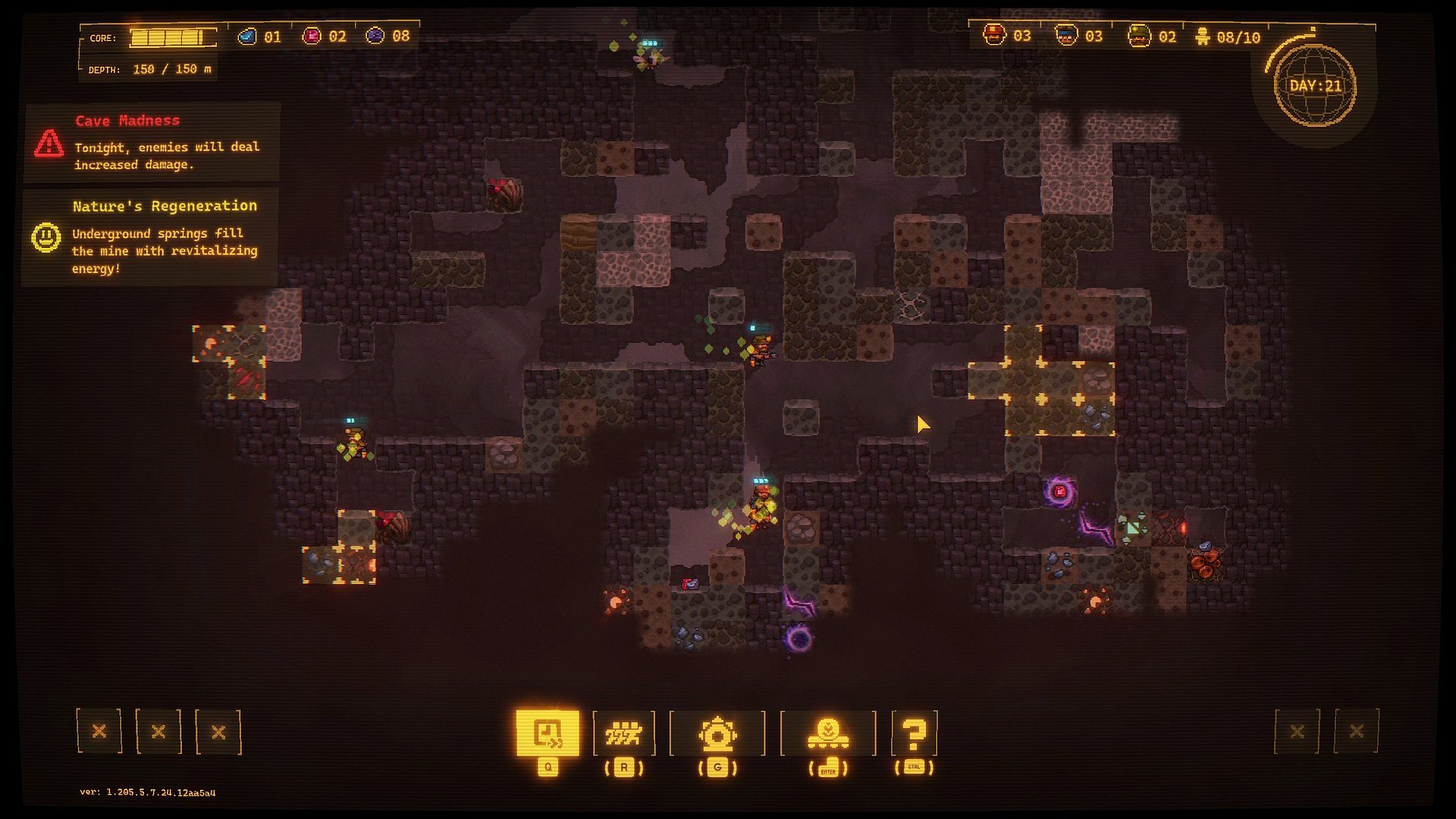 Drill Core ist ein Roguelite-Abenteuer, das Minenbau mit Ressourcenmanagement und prozedural generierten Herausforderungen verbindet. Im Kern steht das Bohren: Mit einer mächtigen Bohrplattform, die gleichzeitig als ausbaubare Basis fungiert, arbeitet man sich immer tiefer in den Mantel unterschiedlicher Planeten. Dabei werden wertvolle Mineralien und seltene Rohstoffe gesammelt, doch je weiter es hinabgeht, desto größer werden die Gefahren. Denn nicht nur einstürzende Tunnel, Feuergeysire und feindseligen Kreaturen lauern in den Tiefen. Ist die Tagschicht zu Ende geht es in der Nacht nämliche erst richtig los: Während unbesiegbare Riesenwürmer die Mine unsicher machen, attackieren von oben Wellen von Ungeheuern unsere Bohrplattform. Vermutlich gefällt ihnen nicht, dass wir nahe dem Planetenkern eine Bombe detonieren lassen möchten, um die Ökologie des Planeten nachhaltig zu ändern. Wurde das noch nicht erwähnt?