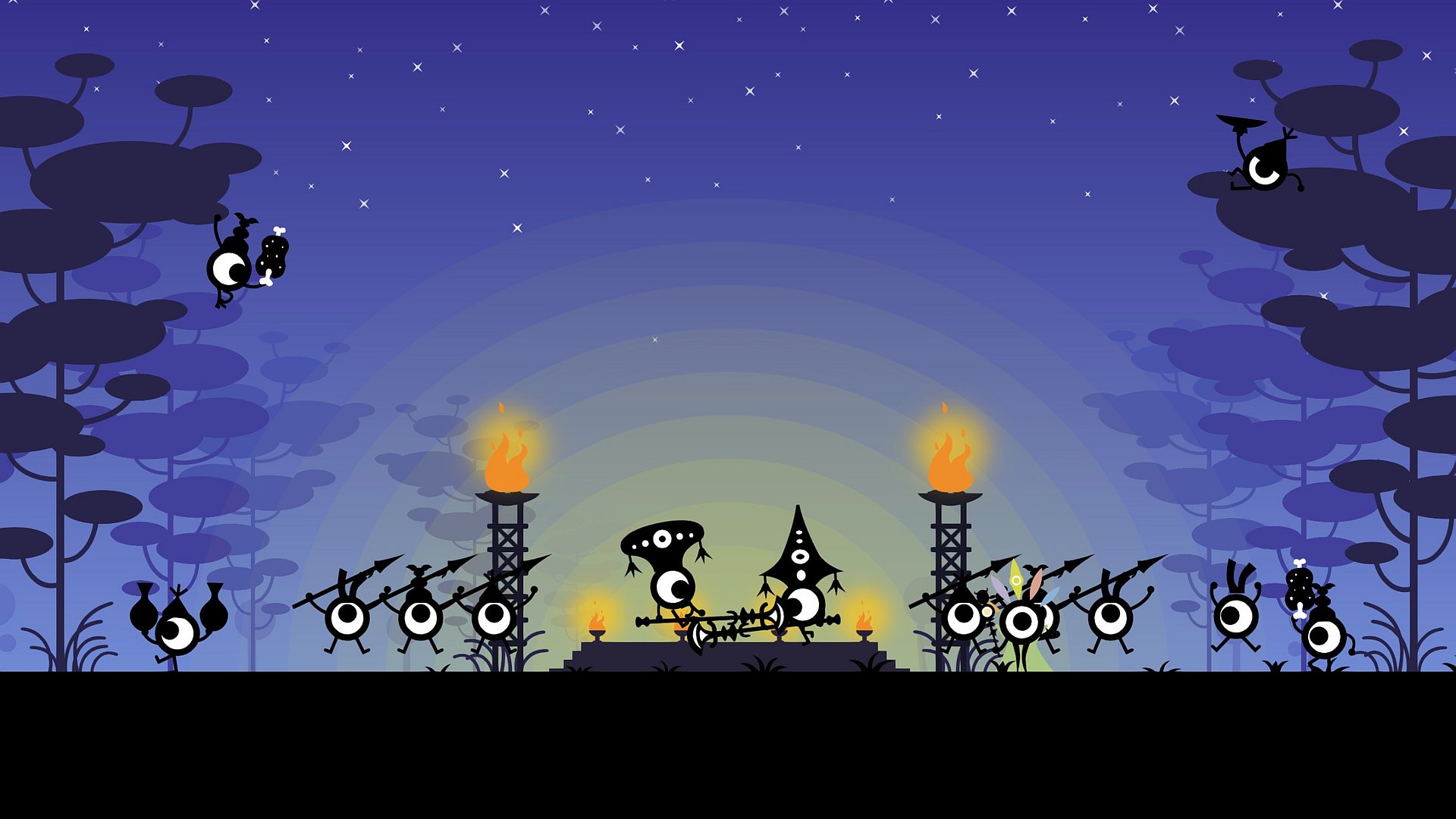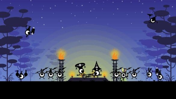 PATAPON besticht durch einen einzigartigen visuellen Stil: minimalistisch, fast schattenrissartig, aber voller Charme, die Schlachten wirken wie ein abstraktes Schattenspiel. Jede Mission mischt Strategie und Timing, sei es beim Erstürmen feindlicher Lager, beim Jagen wilder Kreaturen oder im Kampf gegen übergroße Boss-Monster.