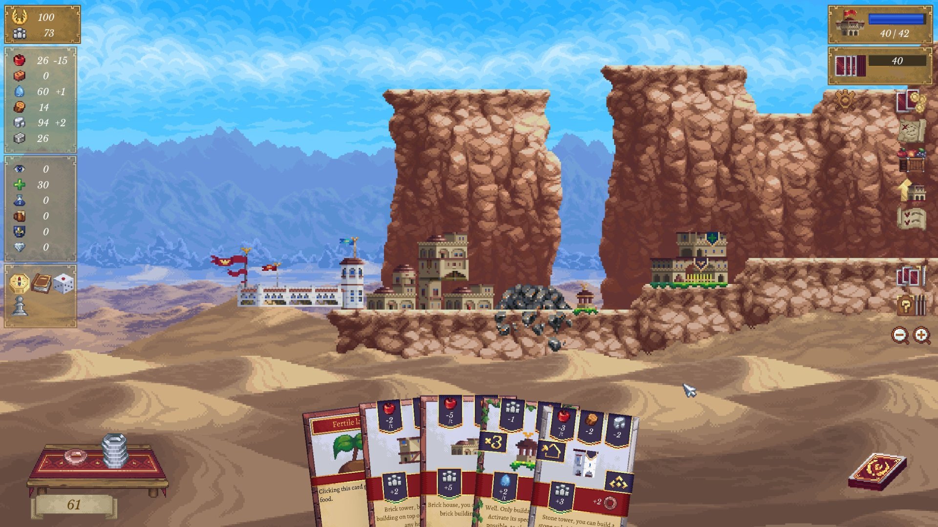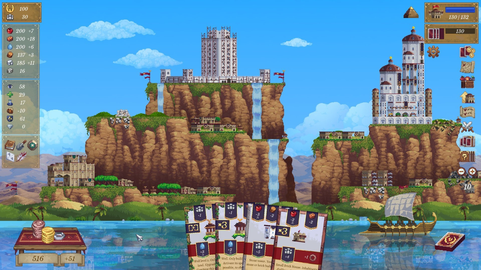 Kurzum: unsere Städte wachsen zwar in die Höhe, unsere Strategie muss aber – Achtung, Wortspiel!! – tiefer gehen. So ist Vertical Kingdom auf seine ganze eigene Art eben ein forderndes, interessantes und liebevoll gestaltetes … „kartenbasiertes Stadtbau-Roguelite-Spiel“.