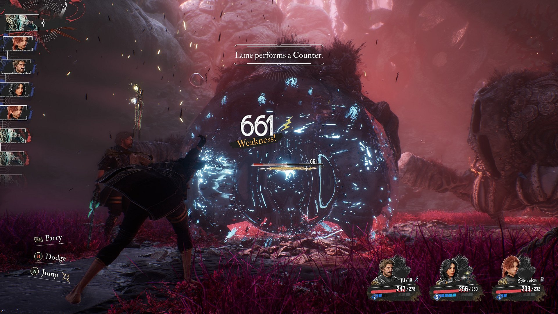 Im Mittelpunkt des Gameplays steht ein hybrides Kampfsystem: Rundenbasiert, aber angereichert durch aktive Elemente wie zeitkritische QuickTime-Events, Ausweichmanöver und Blockaktionen. Diese Mischung sorgt für ein hohes Maß an Interaktivität in jedem Kampf und verlangt nicht nur strategisches Denken, sondern auch gutes Timing. Die verschiedenen möglichen Mitglieder unseres Teams verfügen zudem über sehr individuelle Fähigkeiten und Angriffsmuster, was Teamzusammenstellung und taktische Vorausplanung enorm wichtigmacht.