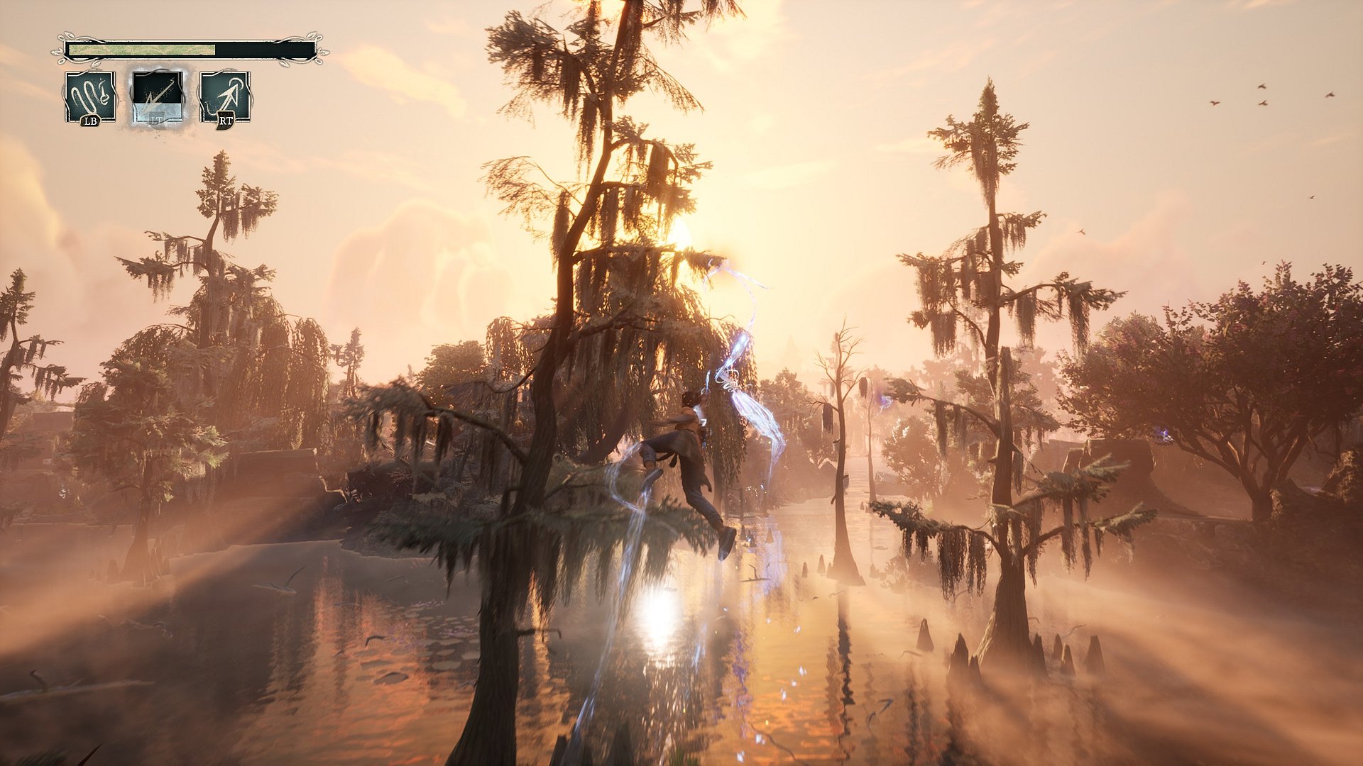 Die grafische Gestaltung ist hingegen eine der Stärken von South of Midnight. Sie vereint stilisierte 3D-Modelle mit leichtem Stop-Motion-Flair welche das ganz eigene Flair des Südens der USA gekonnt einfangen. Die Umgebungen – von verfallenen Plantagen über knorrige Sumpfpfade bis hin zu geisterhaften Zwischenwelten – wirken gleichzeitig schön und bedrohlich. Begleitet wird das Geschehen von einem eindrucksvollen und einzigartigen Soundtrack, der Folk-, Blues- und orchestrale Elemente verbindet.
