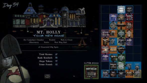 Das Spiel läuft in „Tagen“ ab, wobei jeder Tag ein Durchlauf durch das Haus ist. Dabei steht jeweils nur eine begrenzte Anzahl Schritte zur Verfügung, um so viele Räume wie möglich zu durchqueren und zu erkunden. Die größte Herausforderung stellt dabei das sogenannte Drafting-System dar: Nach dem Öffnen einer Tür erhält man mehrere Raumkarten zur Auswahl, von denen genau eine platziert werden darf (und muss!). Jeder Raum hat vordefinierte Ein- und Ausgänge und Eigenschaften. Manche gewähren zusätzliche Schritte, andere enthalten (teilweise kombinierbare) Gegenstände oder sind Teil eines kleinen oder auch mal größeren Rätsels. Wie es sich für ein Roguelike gehört schaltet man durch das Erfüllen bestimmter Kriterien oder Aufgaben außerdem nach und nach neue Raumkarten, Boni und permanente Upgrades frei.