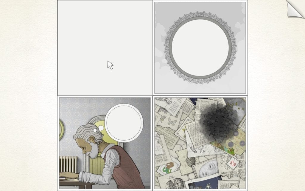 Manchmal steht man als Schreiberling vor dem Problem, dass sich das Spielprinzip eines Titels nur schwer in Worte fassen lässt. Bilder und Videos können helfen, aber auch die sind manchmal für sich genommen nicht wirklich aussagekräftig, weil der Zuschauer vielleicht gar nicht versteht, was er/sie eigentlich sieht. Und dann gibt es noch Titel wie Gorogoa, auf die beides zutrifft. Ich kämpfe nicht nur damit, die Spielmechanik dieses Puzzlers zu beschreiben, ich weiß zudem, dass auch Screenshots und Videos die Sache nicht unbedingt besser machen werden. Aber versuchen wir es: Gorogoa erzählt ohne Worte und Texte eine Geschichte in vier, in einem Quadrat angeordneten Paneelen. Unsere Spielfigur agiert selbstständig, wir können sie nur beeinflussen durch das, was in den anderen Fenstern passiert. Darum müssen die (bis zu maximal vier) aktiven Paneele zum Beispiel so angeordnet werden, dass eine neue Szene entsteht und wir unser nächstes Zwischenziel erreichen können. Gezeigt werden allerdings Szenen aus verschiedenen Zeiten und Welten und die wollen oft nicht so recht zusammenpassen. Schaffen wir es allerdings – zum Beispiel durch hinein- und hinauszoomen – eine optische Verbindung zu schaffen, können wir Hindernisse verschwinden lassen oder neue Wege offenbaren. Außerdem können die Paneele sich gegenseitig auch beeinflussen: Kommt von „unten“ Hitze steigt der Druck in einem Kessel. Oder ein großer Magnet in einer Ecke wird Kompassnadeln in der Nachbarschaft in seine Richtung ziehen. Manchmal „fehlt“ aber auch etwas und dann wir zum Beispiel ein leerer Türrahmen aus einer Szene entnommen und in einer andere eingesetzt – und schon sieht die (Spiel)welt ganz anders aus.
