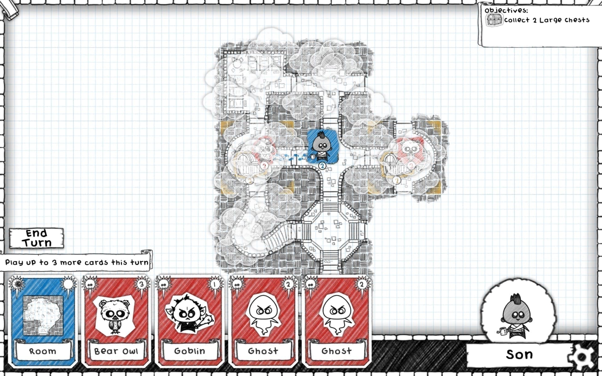 Ansonsten hatte ich in den vergangenen Wochen leider kaum Zeit mich wirklich ernsthaft mit einem, geschweige denn mehreren Spielen auseinanderzusetzen. Zumindest zwei kurze, aber nette Begegnungen hat ich Mitte Juli mit Guild of Dungeoneering und The Magic Circle. Beide nehmen sich selbst nicht sehr ernst und während Ersteres die Pen&Paper-Szene aufs Korn nimmt persifliert zweiteres gleich die gesamte Videospiel-Industrie. Aber ein Spiel nach dem anderen: Guild of Dungeoneering ist ein runden- und kartenbasierter Dungeon Crawler. Der Twist: Man steuert nicht einen Held oder eine Heldin (der/die sowieso nur Kanonenfutter für unsere Start-up-Heldengilde ist), sondern „baut“ stattdessen das Dungeon um ihn oder sie herum. Ein Kreuzgang hier, ein Monster und eine Schatztruhe dort um die Beute zu maximieren, damit man mit dem gewonnen Gold die Gilde weiter ausbauen kann. Langzeitmotivation habe ich in dem Spiel zwar nicht gefunden, aber das Spielkonzept, die nette Präsentation und vor allem die herrlich sarkastische Audio-Untermalung haben es mir durchaus angetan.