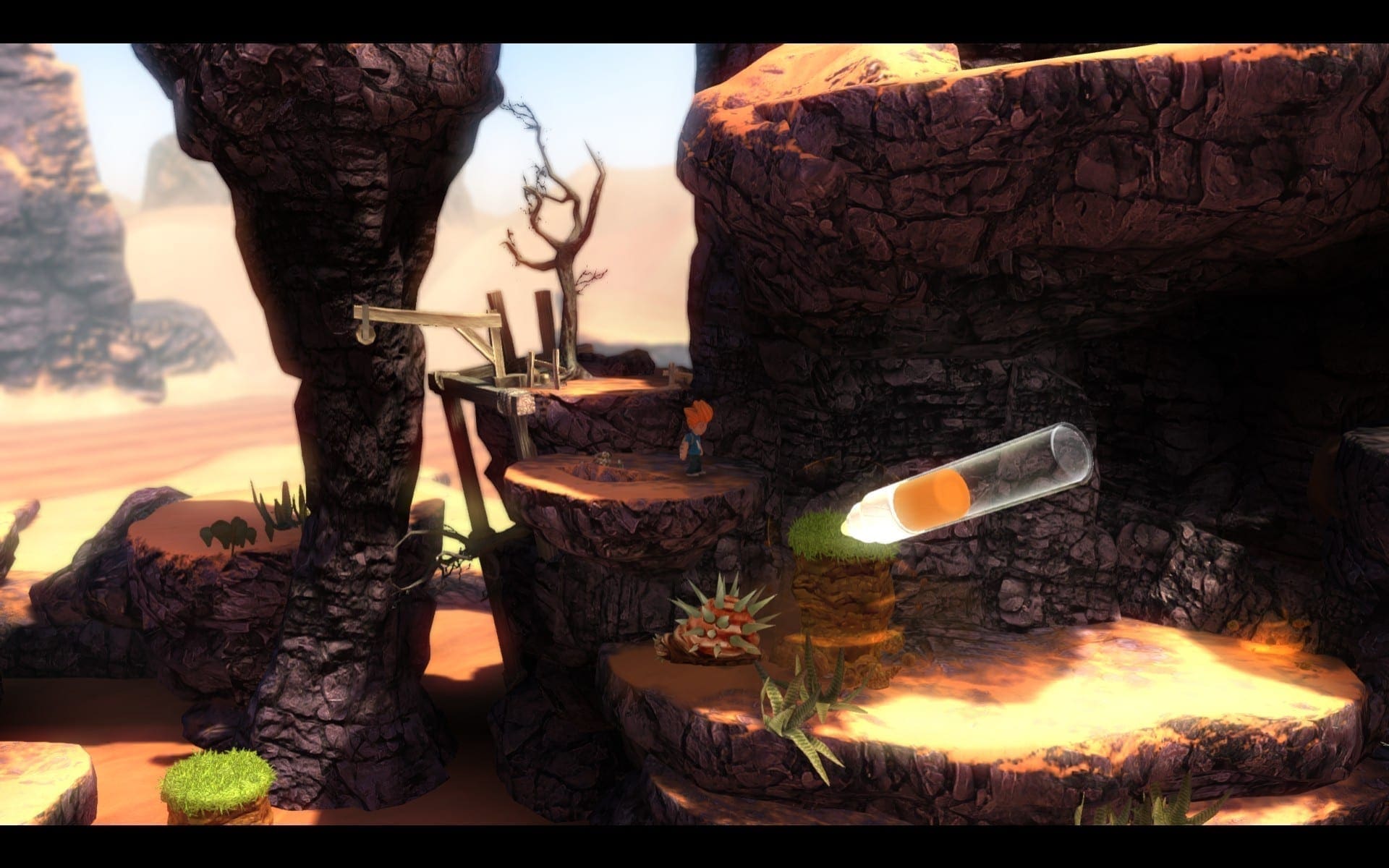 Trotzdem habe ich es mir nicht nehmen lassen, gleich bei Erscheinen einen Blick auf „Max: The Curse of Brotherhood“ zu werfen. Die Erfahrung war … durchwachsen. Max ist erwachsen(er) geworden, hat dabei aber etwas von seinem kindlichen Charme eingebüßt. Diesmal gibt es eine richtige Story (Max hat inzwischen einen nervigen kleinen Bruder, verbannt diesen irrtümlich in eine düstere Paralleldimension usw.), gerenderte Zwischensequenzen und eine hübsche 3D-Welt. Während die Technik aber aufgebohrt wurde, musste an anderer Stelle scheinbar gespart werden. Der magische Stift ist nämlich immer noch omnipräsent, hat allerdings viel von seiner Kraft eingebüßt. Zu Beginn des Spiels kann er zum Beispiel überhaupt nur an fix vorgegebenen Stellen Erdsäulen entstehen lassen. Später kommt immerhin noch das Zeichnen von Wuzeln hinzu, insgesamt wurde hier aber ein wichtiges Spielelement drastisch reduziert. „Max: The Curse of Brotherhood“ ist trotzdem ein nettes Spiel und ein solider Plattformer mit einigen netten Rätseleinlagen, aber für mehr Freiheit beim Puzzeln hätte ich gerne auf viel Eye Candy verzichtet.