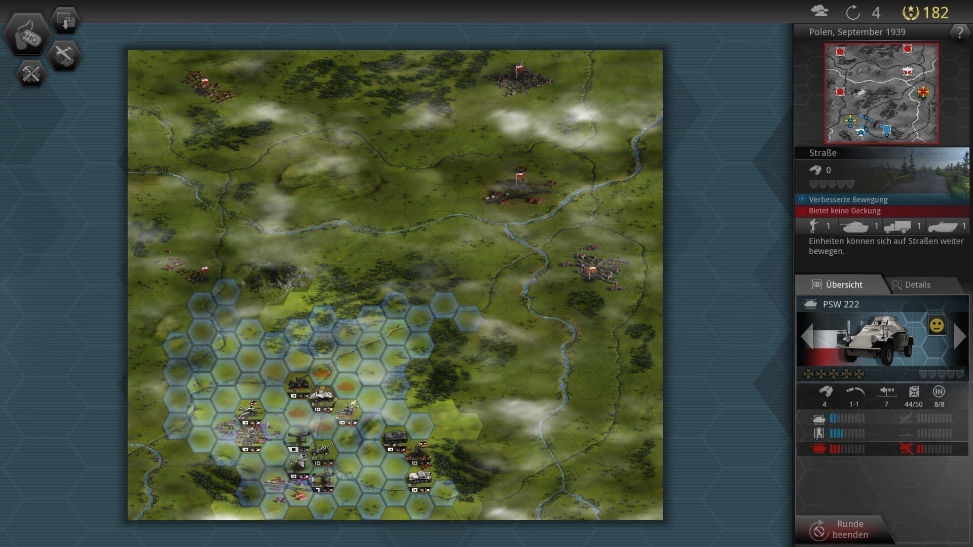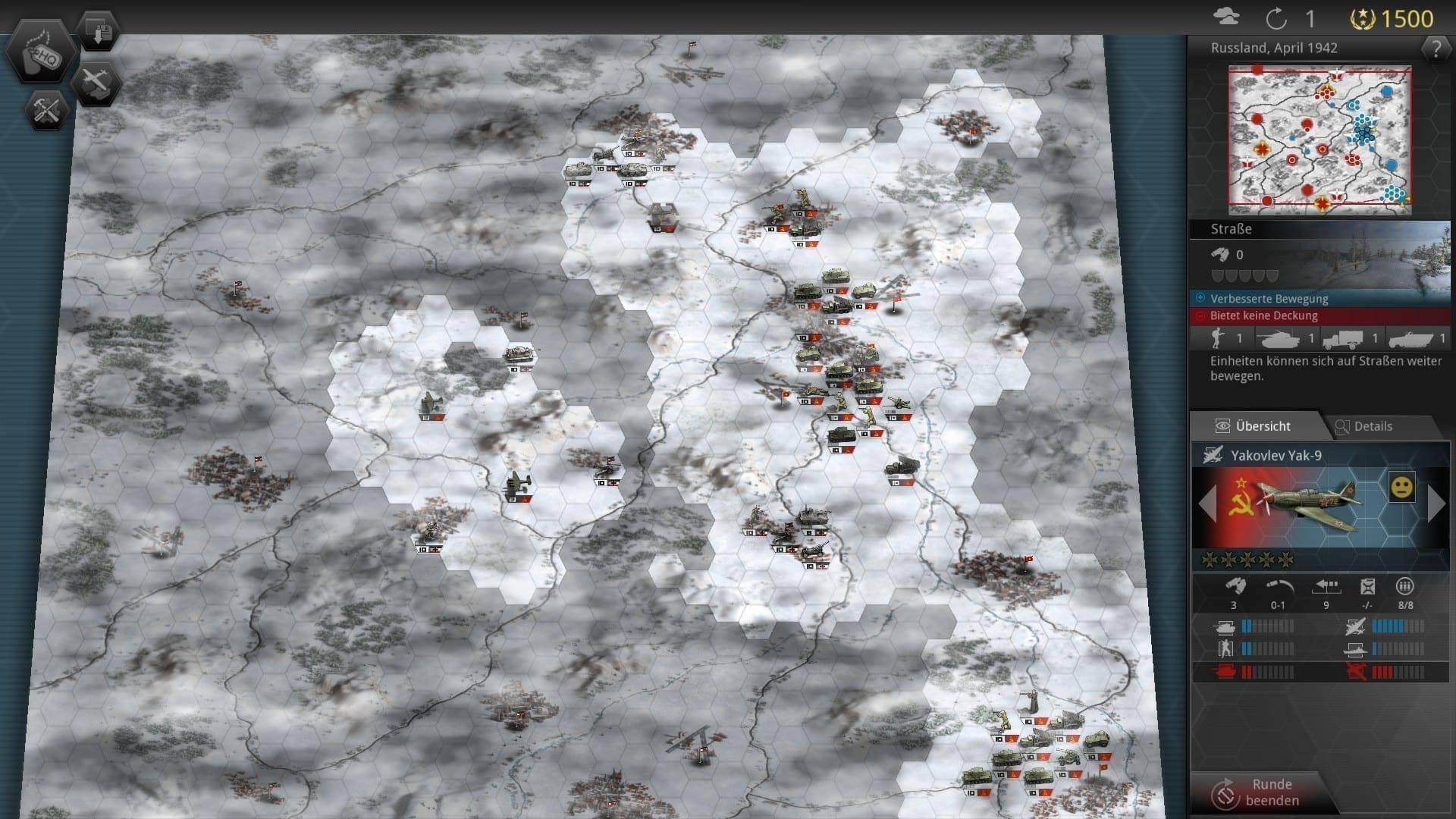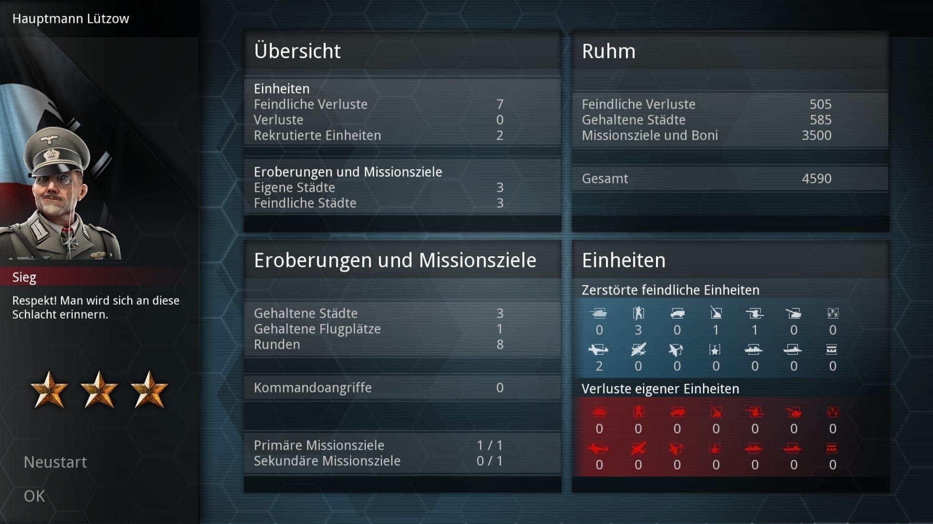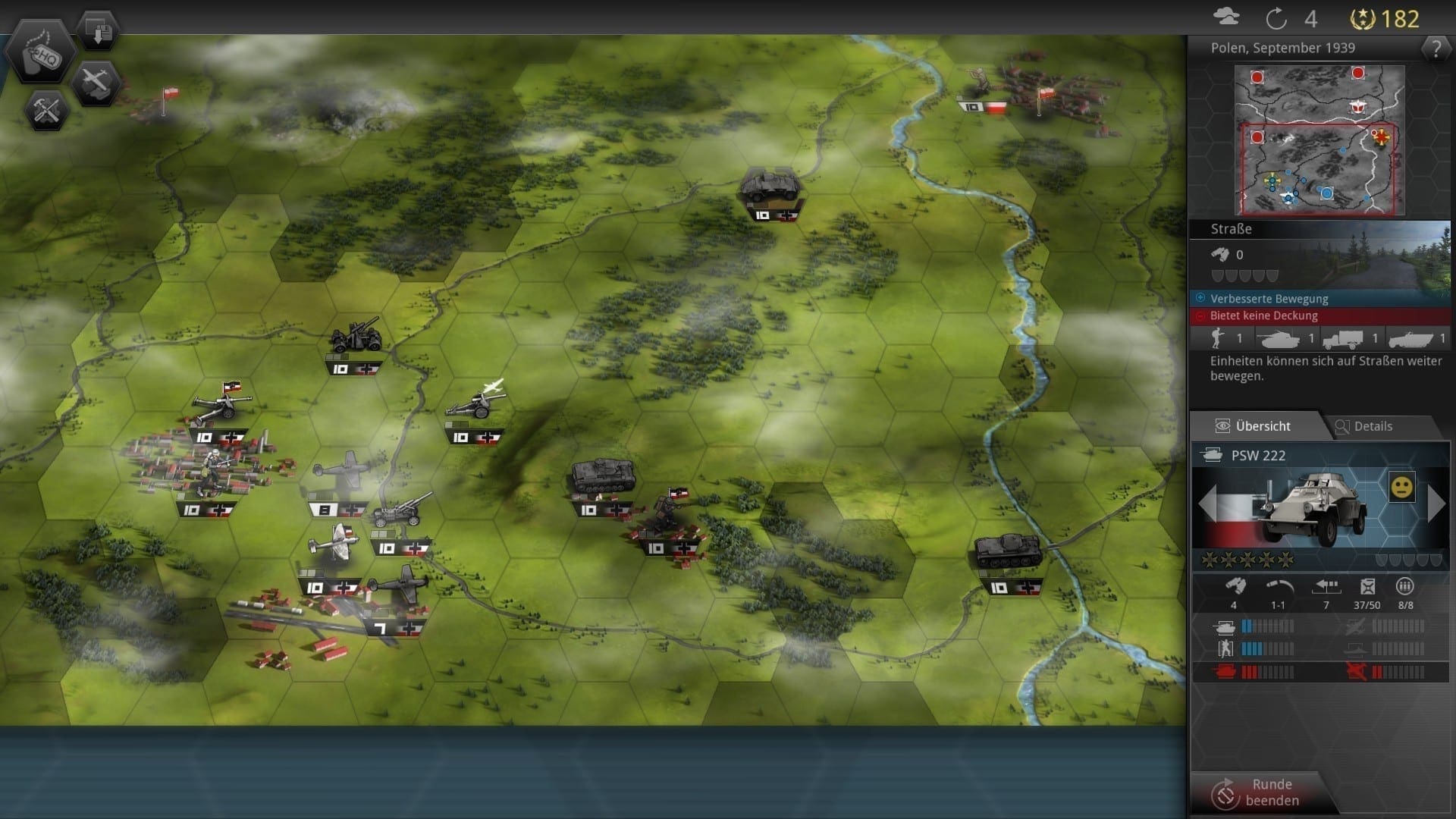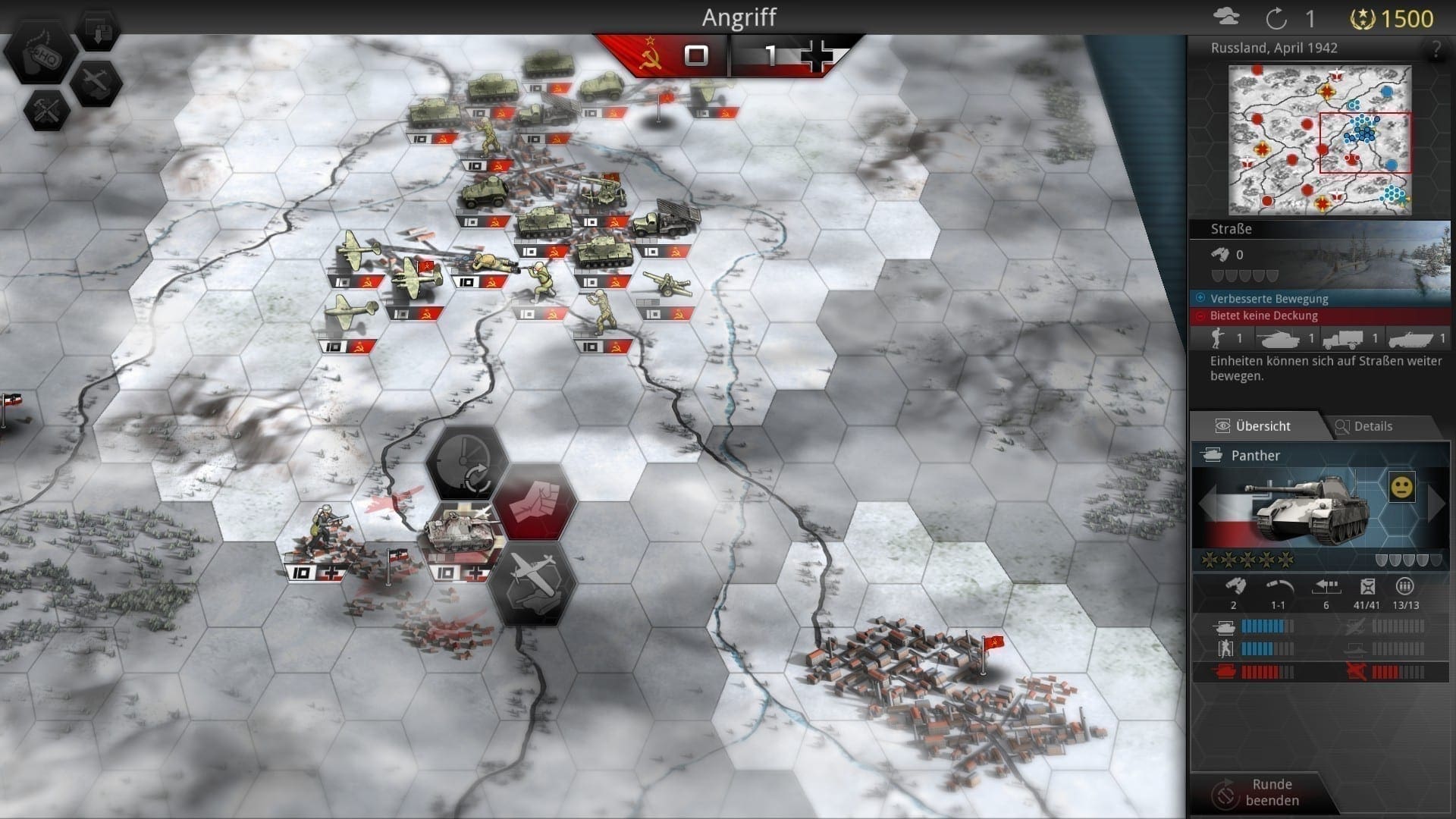 Soweit im Westen nichts Neues… und im Osten auch nicht. Wirklich einzigartige Neuerungen sucht man in Panzer Tactics HD vergeblich. Gut, es gibt Kommandoeinheiten mit denen man Sabotage betreiben oder Attentate auf bestimmte Zielpersonen durchführen kann, aber aussergewöhnliche, einzigartige Features gibt es keine. Die großen Stärken von Panzer Tactics HD findet man dagegen im taktischen Bereich. Nach den sehr trivialen Einleitungs-Missionen in denen die Grundlagen des Spieles erläutert werden, geht es schon in den ersten Missionen heftig zur Sache. Selbst erfahre Strategen finden im Computer einen ebenbürtigen Gegner, auch wenn gelegentlich durchaus gravierende KI-Aussetzer zu bemängeln sind. Obwohl aufgrund des höheren Schwierigkeitsgrades eine zufriedenstellende Spieldauer erreicht wird, insgesamt ist der Umfang eher minimal ausgefallen.