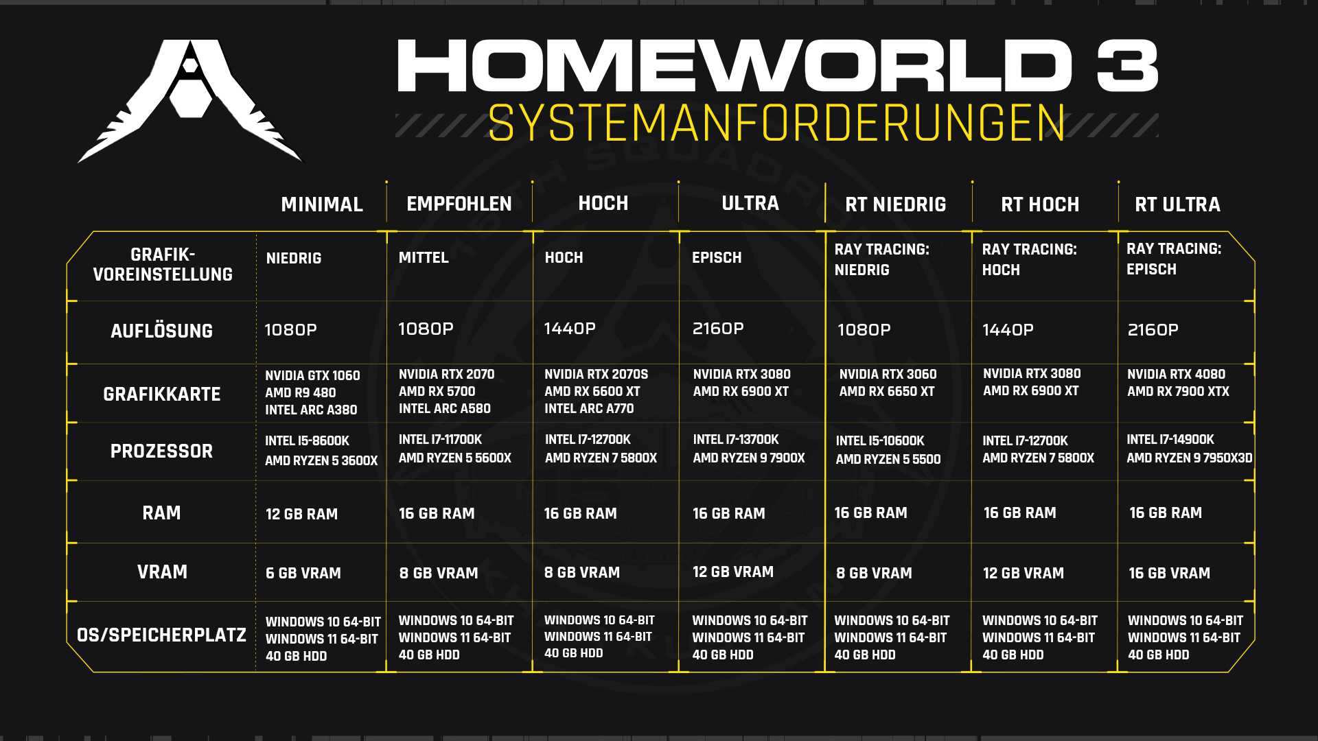 Der lange erwartete nächste Teil der Sci-Fi-RTS-Reihe erscheint 2024. Blackbird Interactive arbeitet weiterhin daran, das Spiel zu optimieren und sicherzustellen, dass die Qualität, der Umfang und das immersive Gameplay von Homeworld 3 auf einem breiten Spektrum von PC-Systemen voll zur Geltung kommen wird.