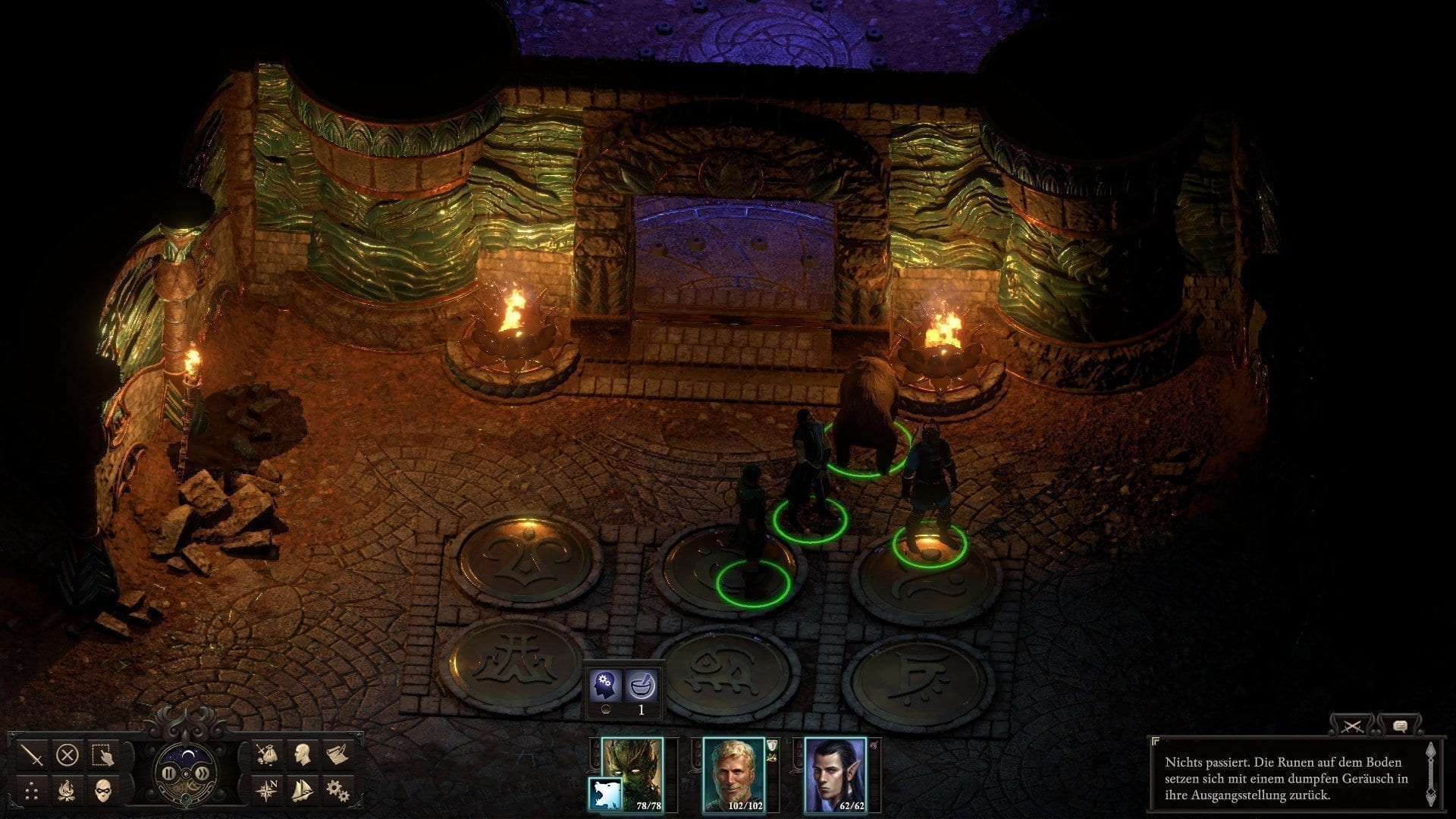 Das Kampfsystem von Pillars of Eternity 2: Deadfire ist wie jenes der großen Klassiker in Echtzeit gehalten. Jedoch mit der Möglichkeit jederzeit zu pausieren, damit wir den einzelnen Figuren Befehle zuteilen können. Dies ist gegen kleinere Feinde selten notwendig. Bei Bossfights sind sie allerdings unverzichtbar, denn nur wer seine Figuren optimal positioniert und koordiniert ist in der Lage sämtliche Bonuseffekte zu nutzen und somit das komplette Schadenspotenzial zu entfalten. So macht es etwa Sinn, Nahkämpfer jeweils vor und hinter dem Gegner zu positionieren, da man dann einen „Flanken-Bonus“ auf den ausgeteilten Schaden erhält. Auch ist es zum Beispiel nicht verkehrt Fernkämpfer höher gelegene Stellungen beziehen zu lassen. Im allgemeinen kommt das Kampfsystem von Pillars of Eternity 2: Deadfire angenehm taktisch daher. Stress im Bezug auf das Tempo hatte ich allerdings eher selten. So taktisch das Kampfsystem auch ist, so gemächlich ist es. Bis die Figuren ihre Angriffe abgehandelt haben und zum nächsten ansetzen ziehen oft einige Sekunden ins Land. Insgesamt betrachtet ist dies jedoch nur ein kleiner Schönheitsfehler in einem sonst tollen System.