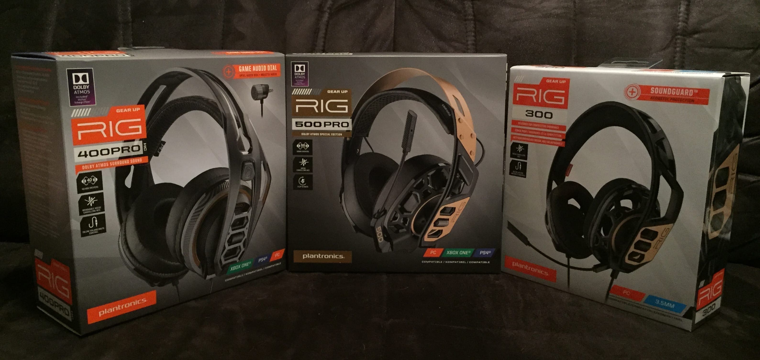 Zusätzlich zum RIG 500 PRO wurden dieses Jahr auf der Gamescom auch zwei Plantronics Headsets für etwas kleinere Geldbeutel vorgestellt: Das RIG 300 sowie das RIG 400 PRO. Im Gegensatz zum RIG 500 PRO setzen alle RIG 400 PRO Versionen auf Kopfbügel aus Plastik, bieten aber in Sachen Komfort denselben flexiblen Innenbügel wie auch das RIG 500 PRO Headset.