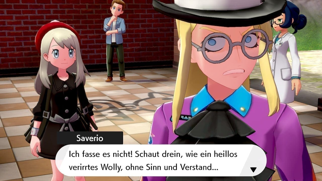 Wir treffen Saverio erstmals nach unserer Ankunft am Bahnhof und er verwechselt uns auch sofort mit einem anderen angehenden Schüler des Dojos, welchen er eigentlich abholen sollte. Natürlich fordert er uns zu einem Kampf heraus, welchen er – unserem viel zu starken Team geschuldet – sofort verliert. Als Rache versucht er uns zu sabotieren und in die falsche Richtung zu schicken. Aber mal ehrlich: ein Level 58 Abra sowie ein Level 60 Flegmon? Da muss schon mehr kommen, um den CHAMP höchstpersönlich zu besiegen. Dies bringt mich auch zu einem Punkt, der mich einfach irgendwie gestört hatte: Es wusste wirklich NIEMAND auf der Insel darüber Bescheid, wer wir eigentlich sind und was wir in Galar bereits geleistet haben.