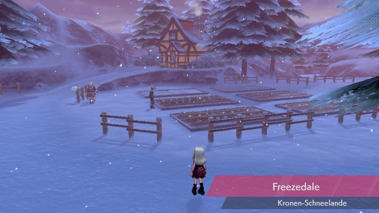 Ein Pokémon-DLC wäre jedoch auch nicht vollständig, ohne nicht mindestens ein neues, legendäres Pokémon selbst einzuführen. Dies ist auch in Die Schneelande der Krone der Fall. So beschaulich das Leben in Freezedale auch wirkt, so groß sind teilweise die Sorgen der Bewohner. Denn in dem kleinen Dorf fehlt seit Jahren eine erfolgreiche Ernte. Der „König der reichen Ernte“ – der Hüter des Dorfes – fehlt. Seine Statue in der Mitte des Dorfes ist zerbrochen. Was es mit derselben auf sich hat dürft ihr selbst entdecken.