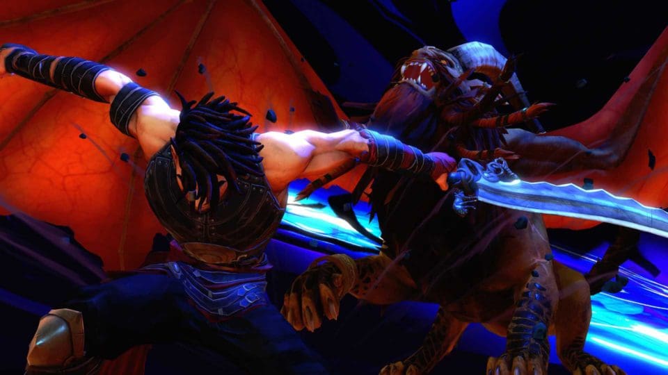 Sind die Gegner anfangs noch mit einfachen Kampf-Kombos zu bezwingen, ändert sich das bald und die ersten Bossgegner stellen sich uns in den Weg. Diese müssen jeweils mit der richtigen Taktik und auch Akrobatik bezwungen werden. So können wir über einen Gegner drüber springen oder unter ihm durch rutschen, um einen Überraschungsangriff zu starten. Gegner können auch in die Luft geworfen und von dort aus bekämpft werden. Ganz wie in DmC. Wir können Angriffe auch parieren, hier ist aber das notwendige Timing gefragt, um den Angriff möglichst erfolgreich abzuwehren. Leuchtet der Gegner bei seinem Angriff kurz „gelb“ auf sollte man „Blocken“ und holt im optimalen Fall gleich selbst zu einem mächtigen Gegenangriff aus. Leuchtet es beim Gegner „rot“ auf sollte man besser Fersengeld geben und ausweichen.