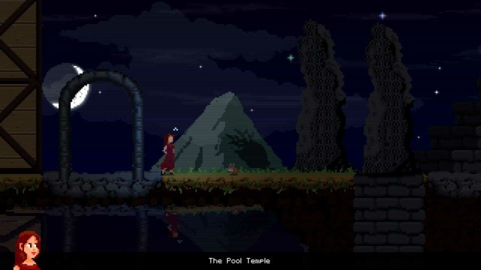 Mich erinnerte die Optik angenehm an die selige Jump-’n‘-Run-Reihe Jill of the Jungle von Epic MegaGames. Auch bietet die Präsentation punktuell moderne Highlights wie schöne Spiegelungen im Wasser oder einen (abschaltbaren) CRT-Filter. Auch einen Tag-und-Nacht-Wechsel gibt es, der sogar für Rätsel relevant ist.