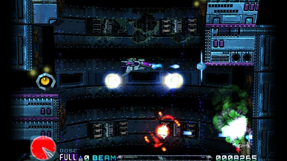 Die sehr unterschiedlichen Gegner sind in gewohnt bösartiger Art nicht zimperlich und feuern immer sehr zielgenau auf unseren aktuellen Aufenthaltsort. Um voran zu kommen ist es unbedingt notwendig, die Gegnerwellen auswendig zu lernen. Wenn ihr nicht wisst, wer wann wo erscheint, werdet ihr – wie bei praktisch jedem klassischen Shmup – nicht weit kommen. Wenn ihr den Feuerknopf länger gedrückt haltet, lädt sich eure Kanone auf und erlaubt dann einen besonders starken Schuss – auch das ist eine bereits seit dem ersten Teil von R-Type bekannte Waffe. Ein anderer Feuerknopf ist übrigens mit Dauerfeuer belegt – ihr müsst also nicht wie einst in der Spielhalle wie ein Irrer ununterbrochen auf den Knopf drücken um zu feuern. Eine Besonderheit von R-Type Delta ist die Delta Force. Die lädt sich nämlich langsam auf und kann dann mit Druck auf eine weitere Taste (standardmäßig Y) abgefeuert werden. Je nachdem, wo sich die Force gerade befindet, kann man damit beispielsweise einen vernichtenden Angriff mitten im Feindgebiet loslassen, während sich der R9 in sicherer Entfernung befindet.