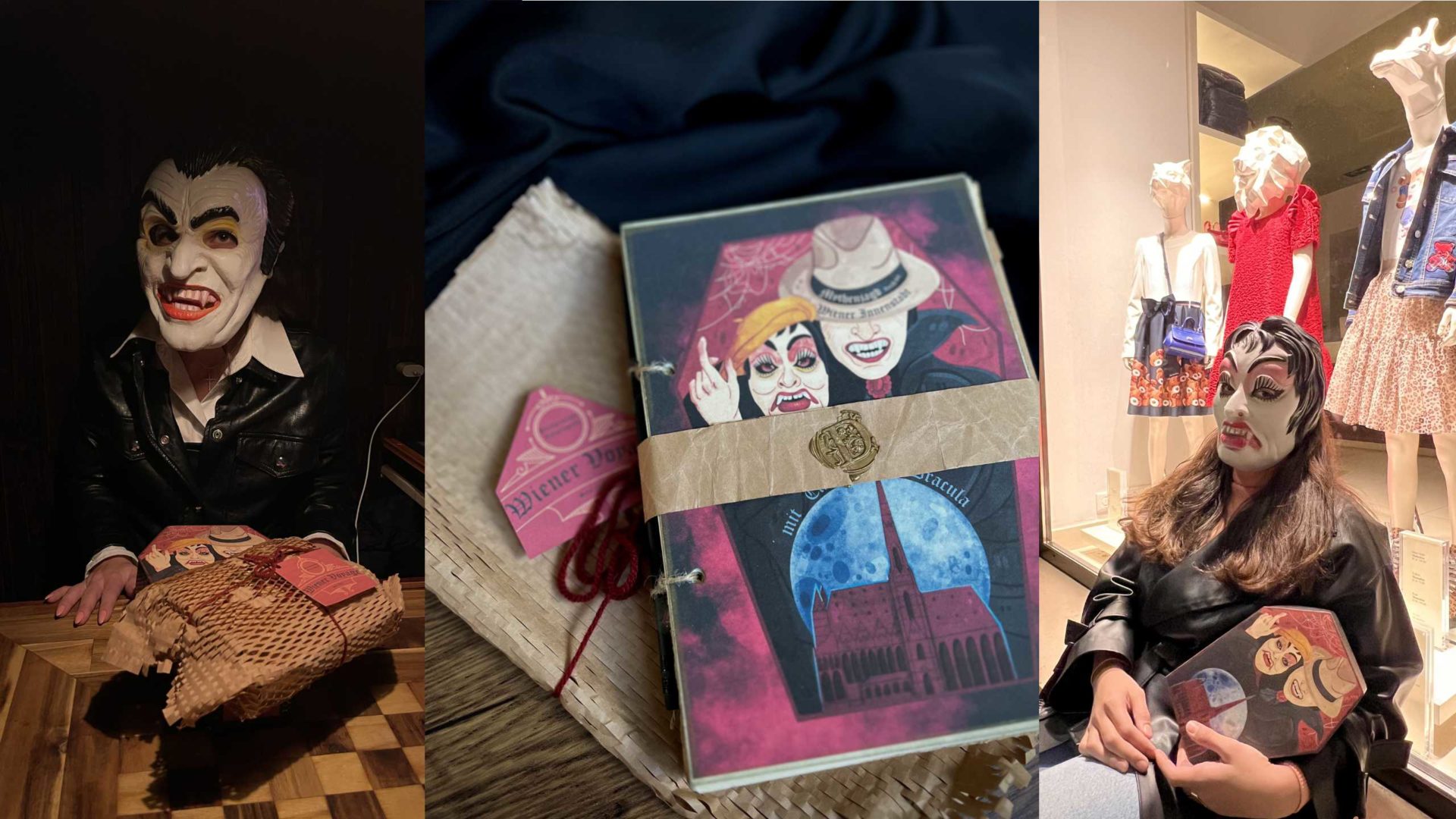 Sozusagen eine neue Mythenjagdreihe, die klassische Schnitzeljagden auf eine neue Ebene bringen möchte. Hier verflechten die Erfinder:innen Klassiker der Schauerliteratur mit echten Sagen und Mythen aus Wien. Um das zu tun, haben sie sich intensiv mit ihren Lieblingsbüchern des Gruselgenres auseinandergesetzt und sich in Wiens Geschichte vertieft. Das Ziel war, Verbindungen zwischen den Wiener Mythen und den weltbekannten Geschichten zu finden und diese in Form einer Mythenjagd auf den Markt zu bringen. Was im Sommer 2022 mit einer Idee begonnen hat, ist nun ein fertiges Mythenjagd-Set.