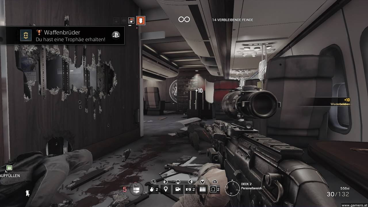 Gegenüber den Betaversion macht Rainbow Six: Siege mittlerweile online schon einen ganz ausgereiften Eindruck, während unseres Tests kam es eigentlich zu fast keinen Spielabbrüchen auf der PS4, allerdings dauerte der Verbinungsaufbau zu den Servern bei manchen Partien vor dem Beginn recht lange und auch kleinere Bugs sind mir manchmal aufgefallen. Ganz witzig wenn die Wumme eines Gegners durch die zugeangelte Tür zu sehen ist oder der Spieler an machen Stellen hängen zu bleiben scheint. Aber das passierte wirklich eher selten und tat dem generellen Spielspaß keinen Abbruch.
