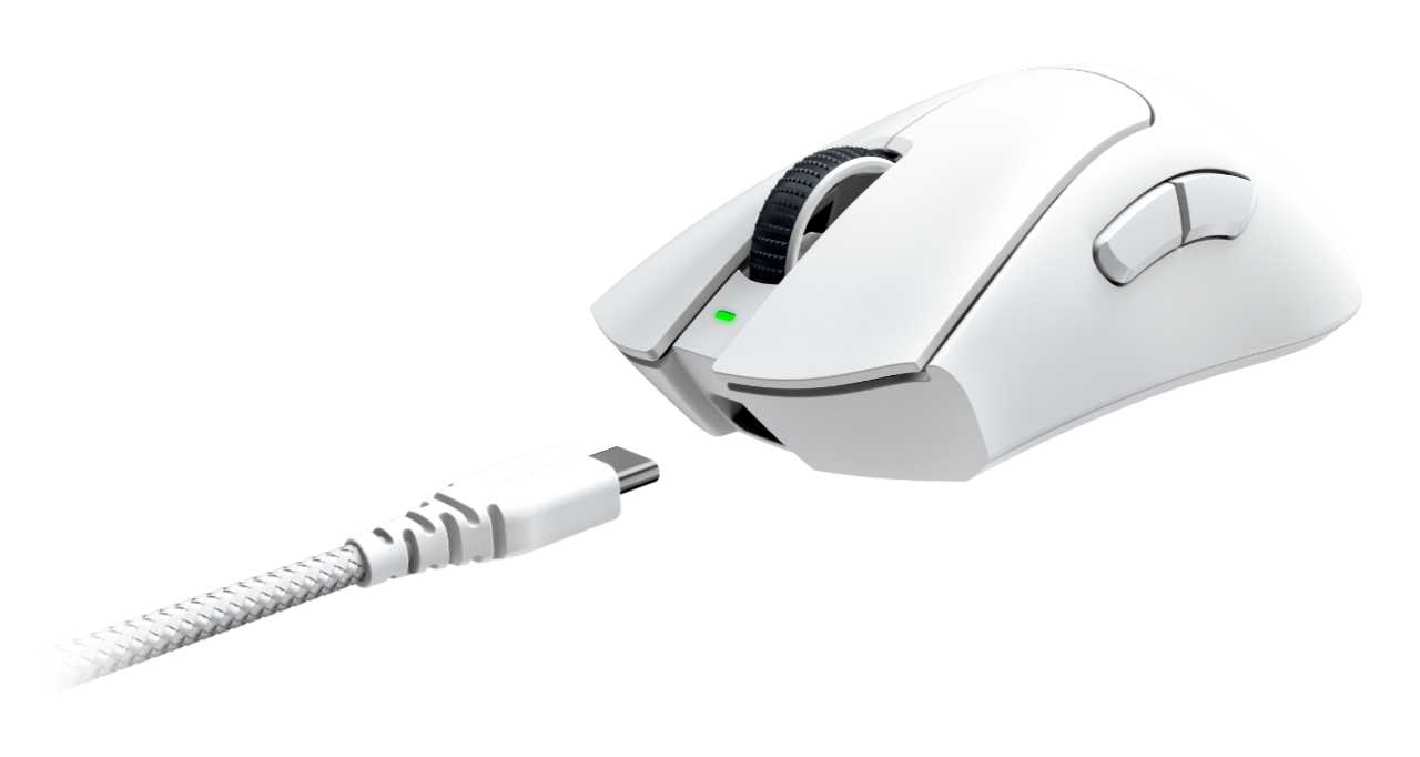 Die DeathAdder V3 Pro ist mehr als 25 % leichter als ihr Vorgänger, bietet eine Akkulaufzeit von bis zu 90 Stunden und lässt sich mit dem mitgelieferten Razer Speedflex-Ladekabel einfach über USB Typ C aufladen.