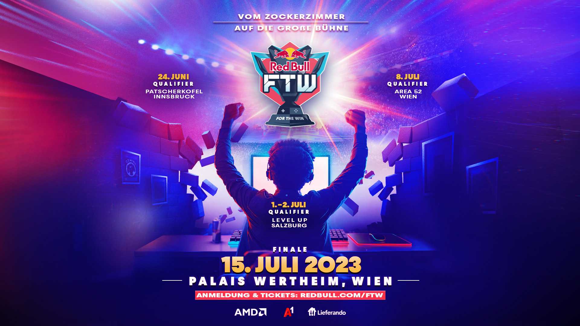 Red Bull launcht mit dem E-Sports Qualifikationsturnier Red Bull For The Win in Österreich eine neuartige E-Sports Turnierserie. Getreu dem Motto „Vom Zockerzimmer auf die große Bühne“ erhalten ambitionierte Gamerinnen und Gamer die Möglichkeit, sich gegen waschechte E-Sport Profis durchzusetzen und zu echten Champs aufzusteigen. In jeweils drei Qualifikationsturnieren in Innsbruck, Salzburg und Wien werden dabei in den Spielen CS:GO, League of Legends und Rocket League die besten Gaming-Talente Österreichs gesucht. Der finale Showdown findet am 15. Juli im Wiener Palais Wertheim statt. Das neuartige Turnierformat soll es talentierten Spielerinnen und Spielern ermöglichen, komplett in die Welt des professionellen E-Sports einzutauchen. Angefangen bei der Vorbereitung in einem ganztägigen E-Sport Coaching bis zum Finale auf dem großen Screen vor echtem Live-Publikum. Neben der einmaligen Chance gegen echte Pros in einem fulminanten Showdown anzutreten, haben die Finalist:innen zudem die Chance auf ein Preisgeld in Höhe von 4.500 Euro.