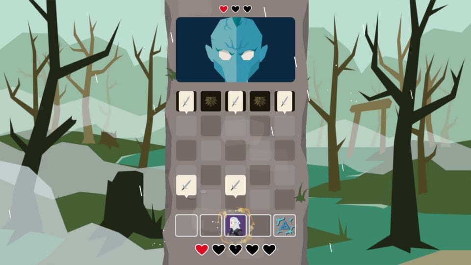 Abseits des simplen Wischens oder Neudeutsch: Swipens gibt es kleine, rhythmusbasierte Kampf-Minispiele gegen aus den Spielen und der Serie bekannte Monster wie Ertrunkene, Moderhäute oder Ghule. Man muss zur rechten Zeit auf Felder springen um Angriff zu initiieren und hat gleichzeitig negativen Symbolen auszuweichen um die Attacken des Gegners zu verhindern. Ein netter Versuch, etwas Abwechslung zwischen die Kartenstapel zu bringen. Wirklich gelungen sind diese Abschnitte aber nicht, dafür ist die Steuerung zu unpräzise und die visuelle Reduktion nimmt den Gefechten die Wucht. Wer sich lieber auf die narrative Komponente konzentrieren möchte, kann diese Abschnitte im Menü jedoch vereinfachen oder gar gänzlich deaktivieren.