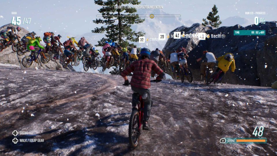 Des Weiteren gibt es die Multiplayer Disziplinen. Alle halben Stunden startet ein „Mass Race“ bei dem bis zu 64 Spieler*innen teilnehmen können. „Mass Races“ vermischen die Sportarten, denn mitten in den Rennen gibt es „Switch Gates“, wenn der Spieler oder die Spielerin diese passiert, wechselt die Sportart zwischen Schnee, Fahrrad und Rocket Wing. Dann gibt es die „Tricks Battle Arena“ bei der 6 gegen 6 Spieler*innen antreten und in einer Arena Tricks ausführen um als Team die höchste Punktezahl zu erreichen. Auch gibt es eine wöchentliche Playlist mit gewerteten Rennen. Alle diese Multiplayer Modi haben aber ein Problem, nämlich den Ping. Oftmals kollidiert man mit anderen, die aus dem Nichts auftauchen, oder man wird um 10 Meter nach hinten versetzt. Gerade bei den „Mass Races“ ist das ein Problem, da 60 Spieler*innen auf der gleichen Strecke schon ohne diese Probleme chaotischen wären