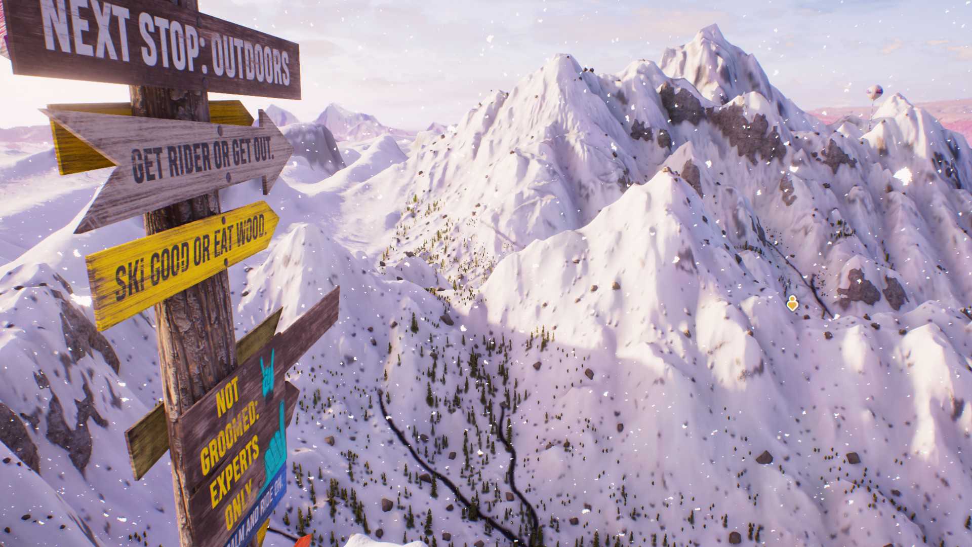 Riders Republic bietet eine unfassbare Open World, mit vielen unterschiedlichen Disziplinen. Aber auch mit sehr vielen anderen Sachen. Es gibt „Landmarks“, welche besondere Orte in der Welt darstellen, wie z.B. 4 Mammut Bäume nebeneinander. Es gibt „Stunts“, welche vom Spieler oder der Spielerin durchgeführt werden können. Es gibt Ballons, die man einsammeln kann. Es gibt diverse Easter Eggs zu entdecken. Und dennoch verliere ich mich regelmäßig beim Ziellosen durch die Open World fahren, und ich weiß nicht mal warum. Es gäbe so viele Dinge zu sammeln, zu Erledigen oder Wöchentliche Herausforderungen zu meistern. Und dennoch lädt die Open World mich immer wieder zum ziellosen Streunen ein.