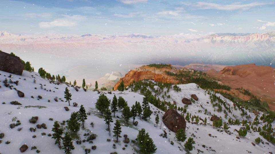 Rider Republic versteht sich selbst als „Massively Multiplayer Sports Game“, da mehr als 50 Spieler*innen gleichzeitig in Rennen gegeneinander antreten können. Desweitern sind auch in der üppigen Open World immer andere Spieler*innen in Sichtreichweite. Damit die Welt so belebt wirkt, hilft Ubisoft aber auch nach und füllt die Welt mit Geistern von echten Spielern und Spielerinnen auf. Die Karte von Riders Republic umfasst die sieben amerikanischen Nationalparks „Bryce Canyon“, „Yosemite Valley“, „Sequoi Park“, „Zion“, „Canyonlands“, „Mammoth Mountain“ und „Grand Teton“. Damit ist von wunderschönen Schneelandschaften bis zu traumhaften Wäldern jegliches Terrain vertreten. Sogar Wüsten finden sich in der Open World. In dem Spiel gibt es unterschiedliche Spielmodi. Zum einen die 5 unterschiedlichen Karrieren, namentlich Snow Tricks, Snow Race, Bike Tricks, Bike Race und Air. Jegliche dieser Karrieren bringt eigenes Equipment, eigene Missionen und mehrere verschiedene Disziplinen mit. Diese Karrieren kann man im Singleplayer oder im Multiplayer mit Freunden spielen. In jeder der Disziplinen muss man normale Wettkämpfe abschließen um sich für Meilenstein-Wettbewerbe wie z.B. die X Games, den UCI Mountain Bike World Cup oder den Red Bull Rampage zu qualifizieren. Das große Ziel in der Story ist die Teilnahme am sogenannten Riders Ridge Invitational.