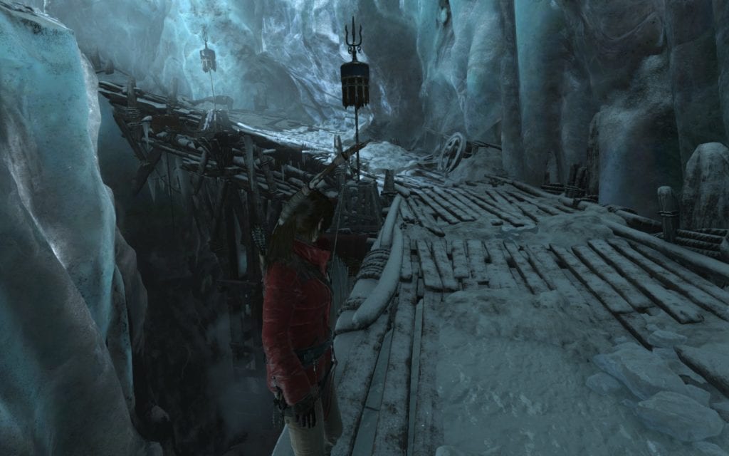 Abseits von all diesem technischen Schnickschnack kann man Rise of the Tomb Raider eines Bescheinigen: Es sieht ganz einfach nur fantastisch aus! Alleine schon der Gletscheraufstieg im ersten Spielabschnitt ist eines der Highlights des Spieles und neben der grafisch imposanten Präsentation auch noch atemberaubend und vor allem spannend inszeniert. Und wer jetzt glaubt, dass der Ausflug nach Sibirien optisch nur wenig Abwechslung mit sich bringt, hat sich geirrt, denn die schneebedeckte russische Wildnis ist nur ein kleiner Teil von Lara’s Reise, die sie weiter durch unterirdische Gletscherhöhlen, riesigen Grabstätten bis hin zur gefrorenen Stadt Kitesch führt. Diese Grafikpracht hat aber natürlich auch ihren Preis. Die minimalen Systemanforderungen werden mit einem Intel Core i3-210, 6 GB Arbeitsspeicher und einer NVIDIA GTX 650 bzw. einer AMD HD7770 Grafikkarte angegeben. Um jedoch die volle Grafikpracht genießen zu können, sollte man mindestens eine Geforce Grafikkarte der 900 Serie oder ein gleichwertiges AMD Pendant in seinem Rechner haben, für Full-HD oder 4K-Auflösungen ist aber selbst das dann schon zu wenig. Aber selbst in mittlerer Grafikqualität sieht Rise of the Tomb Raider immer noch fantastisch aus und lässt sich auch auf Mittelklasse PC’s flüssig spielen. Lara Croft wird übrigens nicht mehr wie im Vorgänger von Nora Tschirner gesprochen, sondern von der Synchronsprecherin Maria Koschny, der deutschen Stimme von Jennifer Lawrence. Gute Entscheidung!