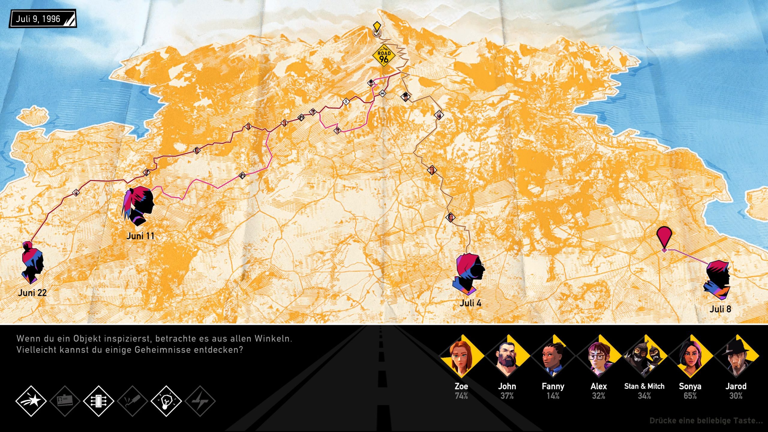 Da Road 96 in Episoden unterteilt ist, kann man entspannt auch kürzere Sessions einlegen und kommt dennoch spürbar weiter. Um an einem sonnigen Sommertag, den man vielleicht mal nicht draussen verbringen will trotzdem einen netten Ausflug zu machen ist Road 96 perfekt.