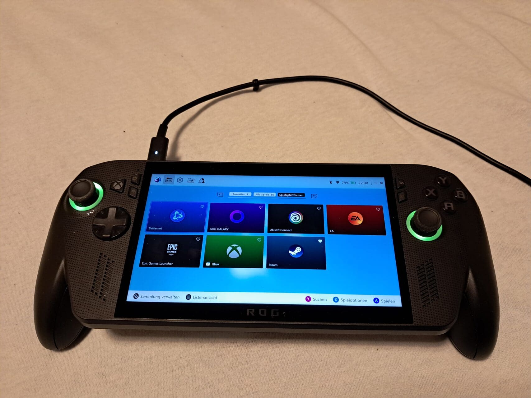 Über Steam habt ihr zu Hause noch eine weitere Option – ihr könnt auf eurem Stand-PC installierte Games einfach auf den ROG Xbox Ally X streamen. Oder ihr installiert Spiele über das DVD-Laufwerk an der Dockingstation. Auch Emulatoren haben super funktioniert. Es kann keiner der beiden Hauptkonkurrenten (Switch, Steam Deck) mit einer derart großen Anzahl an potentiell verfügbaren Spielen mithalten. Die Kompatibilität meiner Spiele mit dem ROG Xbox Ally X war sehr hoch. Manchmal gab es Troubles – aber das waren durchwegs Probleme, die die Spiele auch auf anderen PC-Konfigurationen hatten und die in den jeweiligen Steam Foren bereits gut diskutiert waren. Ausschließlich am ROG Xbox Ally X auftretende Probleme waren sehr selten – aber ein paar wenige Spiele konnte ich schlussendlich doch nicht starten. Einmal war es die – angeblich – fehlende Internetverbindung bei einem Battle.net Spiel, obwohl das Gerät im Büro natürlich permanent im WLAN gewesen ist, einmal ist ein Spiel einfach nicht gestartet (obwohl es am Stand-PC ohne Probleme gelaufen ist). Insgesamt waren das aber wenige Ausnahmen und fast alle meine getesteten Spiele ließen sich (mehr oder weniger) problemlos installieren und starten.