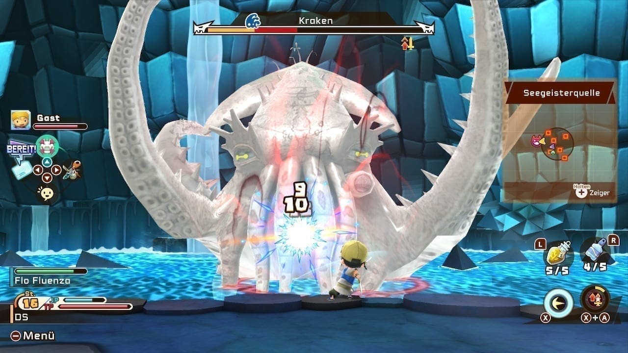 Die Aufgaben selbst, obwohl in Story- und Nebenaufgaben getrennt, sind eigentlich immer dieselben: Die verwöhnte Prinzessin, der König oder ein anderer Bewohner von Croquetta bittet uns um Hilfe. Dann laufen wir durch eine der fix vordefinierten Gebietskarten (Wald, Wüste, usw.) oder durch ein zufallsgeneriertes Dungeon. Lästig: Die Kamera lässt sich dabei nur innerhalb eines fixen 90 Grad Winkels schwenken. Zwischen Level-Ein- und -Ausgang erledigen wir X Gegner, sammeln Y Stück von Z und/oder besiegen einen bestimmten Boss.