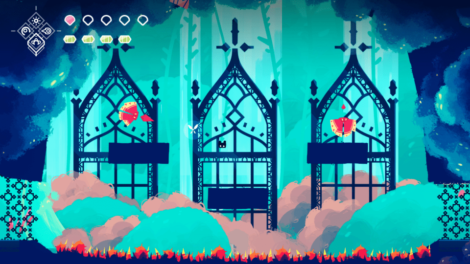 Faerie Afterlight ist ein ziemlich niedliches (und nicht zu schweres) Metroidvania. Die Geschichte ist einfach erzählt – die sechs Scherben des Lichts wurden gestohlen, und die Helden versuchen, sie zurückzuholen. Die Helden? Ja, wir spielen Kimo, einen laufenden Blob, der von der Fee Wispy begleitet wird. Kimo kann ziemlich hoch springen und Feinde angreifen (weitere fortgeschrittene Fähigkeiten sind natürlich im Laufe des Spieles zu finden), und Wimpy kann kleinere Feinde kontrollieren. Es macht Spaß, einen fliegenden Käfer zu steuern und sich auf seinem Rücken fortzubewegen oder einen Feind als Sprungkissen zu benutzen. Wimpy kann auch (einige) schwebende Plattformen steuern, auf denen wir uns fortbewegen können, und sie kann die Landschaft verwandeln, wenn wir bestimmte Punkte erreichen. Darüber hinaus kann uns helfen, (ausgewählte) Plattformen von fest auf durchlässig (und umgekehrt) umzustellen. Der Jump’n’Run-Teil hat sich extrem gut gespielt. Normalerweise sterbe ich bei Jump’n’Run-Spielen sehr oft, aber Kimo lässt sich wirklich gut steuern und es war eine Freude, durch die Umgebung zu hüpfen. Wenn man stirbt, nachdem man seinen Lebensbalken aufgebraucht hat, wird man zum letzten Speicherpunkt zurückgesetzt. Nur eine Warnung – wenn ich ein Jump’n’Run-Spiel liebe (trotz der tödlichen Stacheln), könnte es für Jump’n’Run-Süchtige (zumindest in den ersten Leveln) zu einfach sein. Wobei – spätestens ab dem zweiten Boss wird es dann ein wenig herausfordernder.