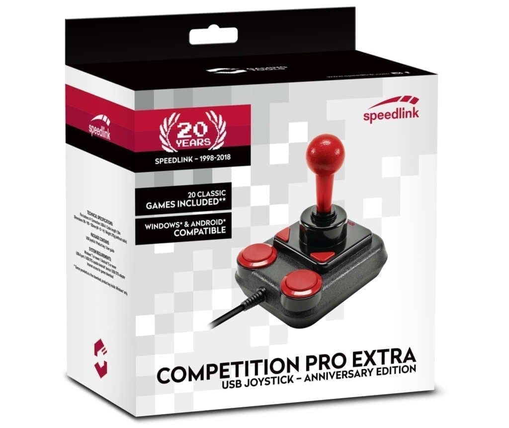 Zeitlich perfekt positioniert präsentiert Speedlink die neue Version des Competition Pro, den COMPETITION PRO EXTRA. An das Original aus den 1980er-Jahren angelehnt, erinnert der klassische Joystick mit den großen Feuertasten auch an die legendären Arcade-Automaten. Das Beste: Nachdem der COMPETITION PRO EXTRA über den gar nicht so klassischen USB-Stecker mit dem PC verbunden wurde, können 20 epische Spieleklassiker per Download-Code von der Speedlink-Seite heruntergeladen werden. Dann heißt es: Game on!