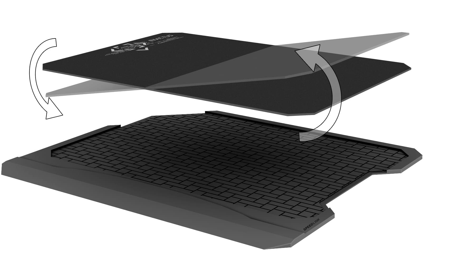 Das hochwertige INVICTUS Core Gaming Mousepad passt sich auch professionellen Ansprüchen an – dank seiner Wendeoption stehen zwei verschiedene Oberflächen zur Verfügung: Eine besonders glatte Seite fördert schnelle Mausbewegungen und einen rasanten Gaming-Stil; die angeraute Seite bietet perfekte Kontrolle, setzt Bewegungen exakt um. Besonders ist das INVICTUS, weil es aus zwei Teilen besteht: Unterlage und Mauspad selbst. Das Pad fügt sich sehr schön in die rutschresistente Halterung ein, die Aussparungen an den Seiten ermöglichen ein schnelles Wenden des Mauspads, damit der User für alle Anforderungen gewappnet ist.