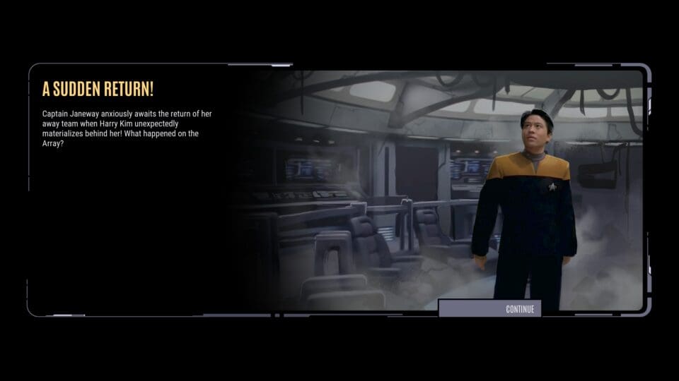 Zu Beginn wählt ihr den Schwierigkeitsgrad. Adventure/Survival/Years of Hell stehen zur Auswahl, wobei die Verfügbarkeit von Ressourcen, der Schwierigkeitsgrad der Kämpfe und Missionen sowie das Heimweh eurer Crew davon beeinflusst werden. Ihr übernehmt die Rolle von Captain Kathryn Janeway, die über die Voyager herrscht. Harry Kim, Tom Paris, B’Elanna, Tuvok und andere bekannte Crewmitglieder stehen euch zur Seite, als die Voyager während einer Missionen in den Badlands plötzlich 70.000 Lichtjahre durch das Weltall geschleudert wird und als Wrack im (prozedural generierten) Delta Quadranten wieder auftaucht. Werdet ihr von da jemals wieder zurück in eure Heimat kommen?