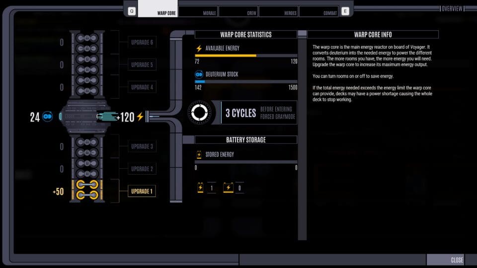 Star Trek: Voyager – Across the Unknown ist eine komplexe Schiffssimulation der (zu Beginn fast komplett zerstörten) U.S.S. Voyager. Ihr übernehmt die Rolle des Kapitäns und entscheidet, welche Räume neu eingerichtet werden und wie die (knappen) Ressourcen verwendet werden, während ihr unbekannte Planeten nach Ressourcen absucht und immer wieder kleine Story-Missionen absolviert. Ihr trefft regelmäßig Multiple-Choice Entscheidungen, bei denen euch zuvor die Wahrscheinlichkeit von Erfolg/Misserfolg angezeigt wird. In komplexen Übersichten wird euch der Status eures Raumschiffes gezeigt. Das Spiel ist definitiv nichts für Schönwetterkapitäne und erfordert eine gewisse Einarbeitung, um die Zusammenhänge der vielen Systeme so halbwegs zu verstehen und dementsprechend informierte Entscheidungen zu treffen. Wer daran aber Spaß hat – und das Star Trek Flair mag – für den gibt es derzeit keine bessere Möglichkeit, in die Schuhe von Kathryn Janeway zu schlüpfen und die U.S.S. Voyager durch den Delta Quadranten zu navigieren. Werdet ihr es schaffen, die Voyager wieder sicher zurück nach Hause zu bringen?