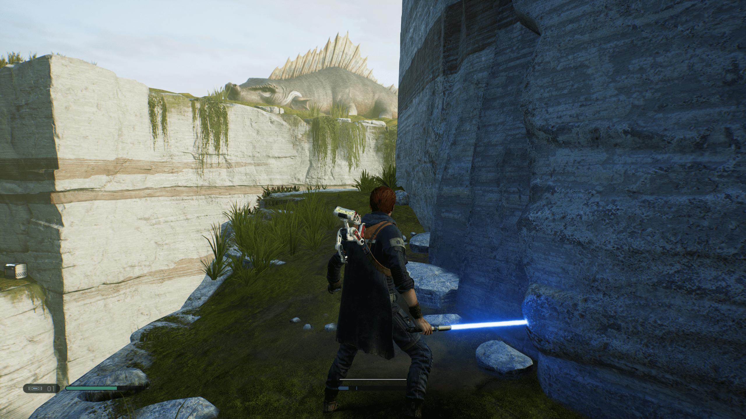 Heimlicher Star von Star Wars Jedi: Fallen Order ist vermutlich der kleine Druide BD-1. Der knuffige kleine Recke ist stets an eurer Seite und erleichtert euch das Leben ungemein. Im Kampf versorgt er euch mit Stims, welche eure Lebensanzeige auffüllen oder hilft euch beim vorankommen in den sehr verwinkelten Welten. Wie bereits erwähnt, hat man sich bei der Konstruktion der Level sehr von Dark Souls inspirieren lassen. Es gibt unzählige Ecken und Geheimnisse, die entdeck werden wollen. Oft versperrt durch Hindernisse, hilft euer kleiner Freund an diese rann zu kommen, in dem er zum Beispiel Türen hackt oder euch als Seilrutsche über Abgründe trägt.