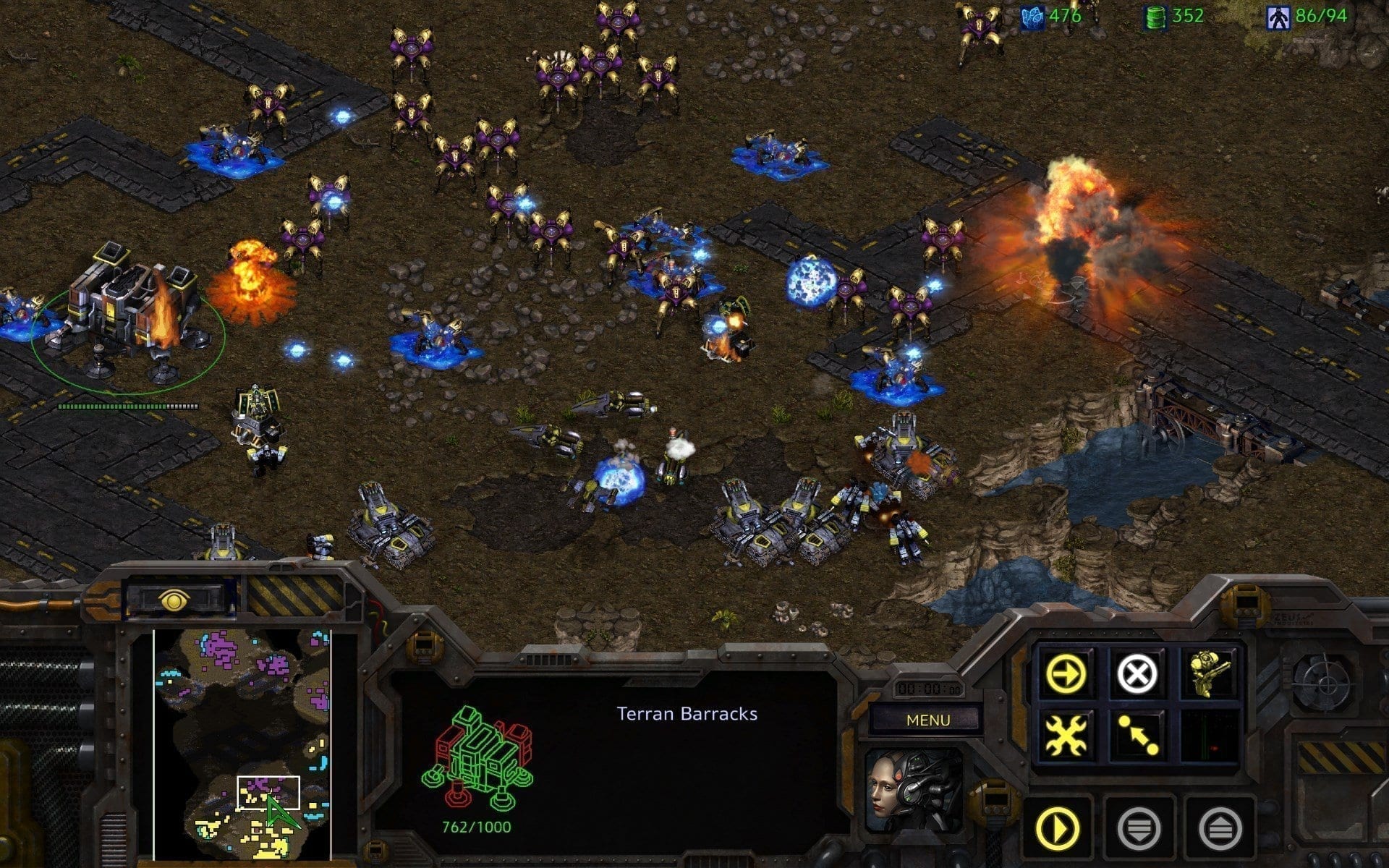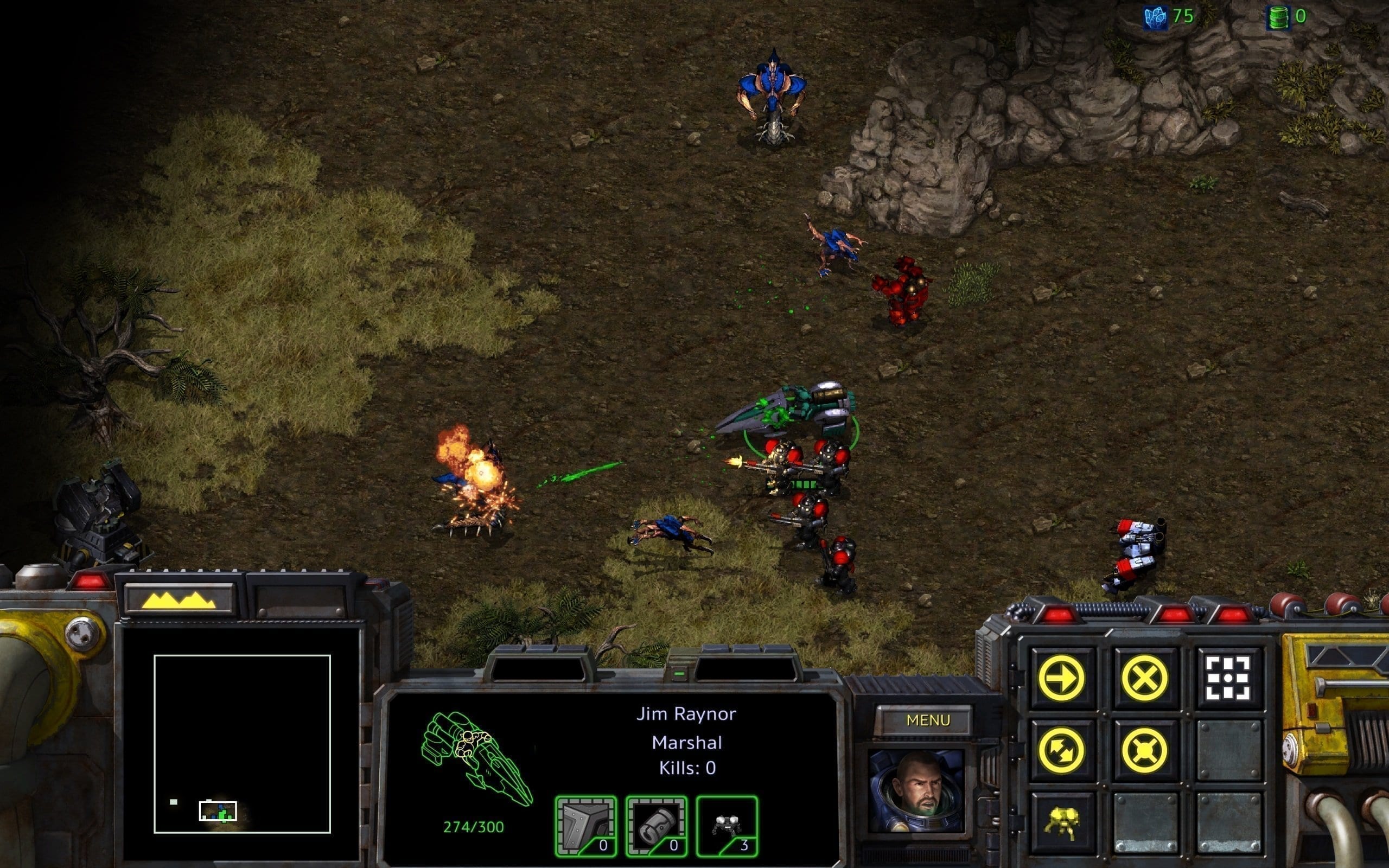 Hauptaugenmerk von StarCraft: Remastered liegt natürlich in der aufgepeppten Optik. Das Original versprüht mit seinem Pixel-Look in einer Auflösung von 640×480 Bildpunkten zwar auch heute noch einen gewissen Retro-Charme, aber die neu gezeichneten 2D-Modelle in protziger 4K-Optik sind dann doch weitaus hübscher anzusehen. Ausserdem gibt es nun, so wie in StarCraft 2, animierten Einheiten-Portraits. Leider wurden die Bewegungsabläufe der Einheiten kaum bis gar nicht verbessert, so agieren diese fast genauso steif wie im Originalspiel und selbst Effekte wie Explosionen oder Feuerwechsel sehen trotz höherer Auflösung nur gerinfügig besser aus. Auch die Zwischensequenzen wurden lediglich hochskaliert und entsprechen damit sicherlich nicht mehr den heutigen Blizzard Qualitäts-Standards.