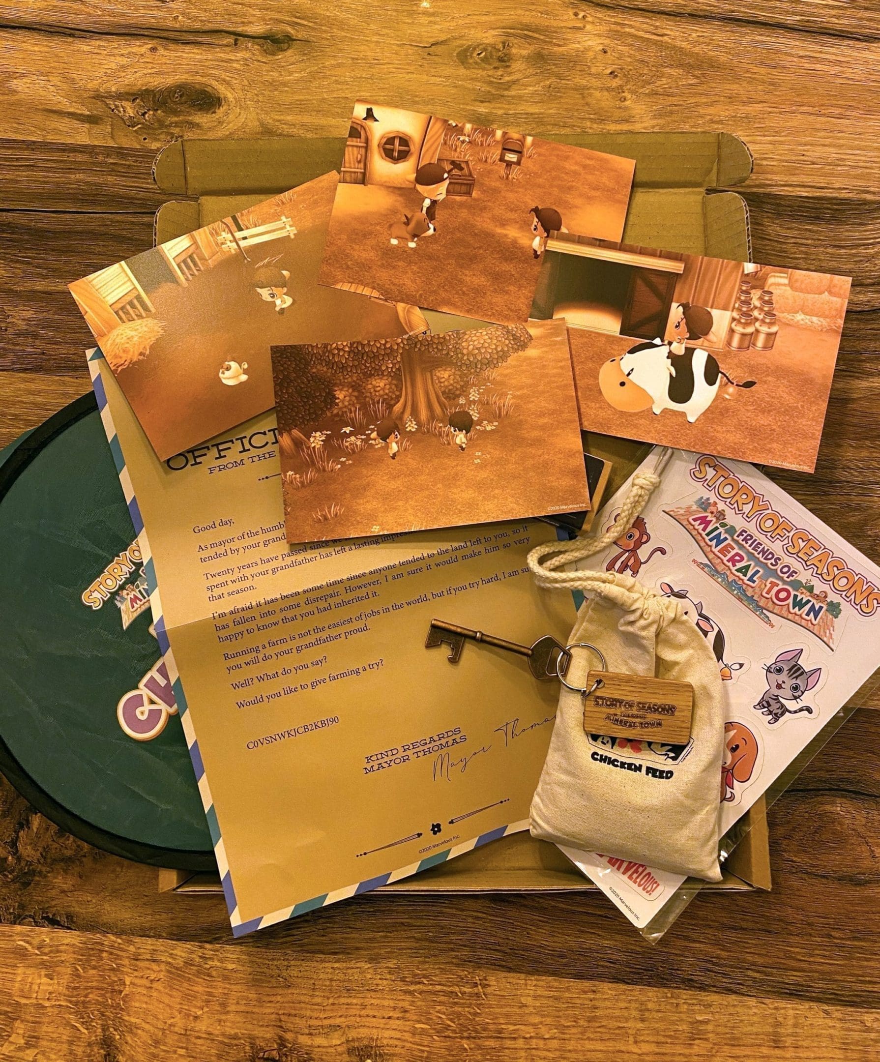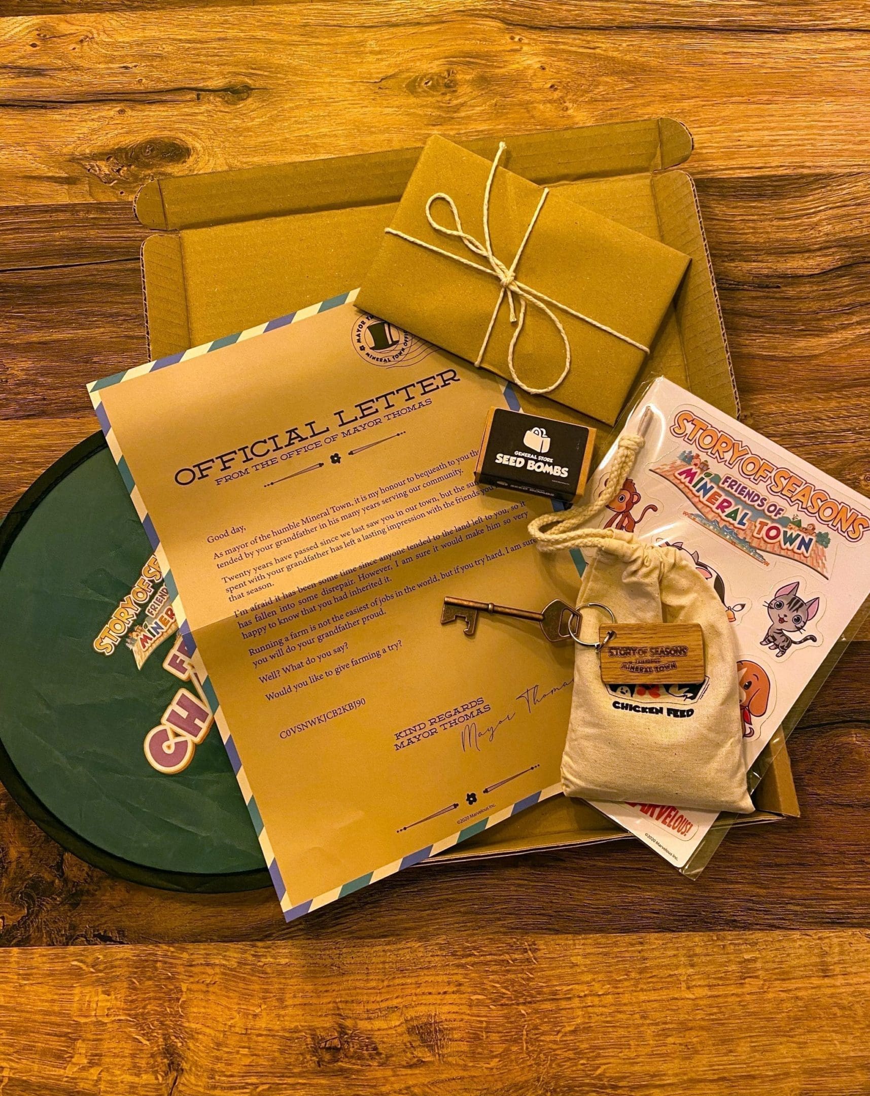 Sehr gefreut habe ich mich in Zusammenhang mit diesem Test auch über das wirklich liebevolle Presse-Set, welches wir von Marvelous erhalten haben. Dieses konnte unser Chef gerade noch so vor seiner Tochter in Sicherheit bringen, es war hartes Rennen! Beim ersten Öffnen des Sets begrüßte mich sofort ein fürsorglich gestalteter Brief – exklusiv von Bürgermeister Thomas höchstpersönlich, inklusive „handgezeichneter“ Fotos von der gemeinsamen Familienzeit am Hof! Thomas heißt uns hierbei in Mineralstadt willkommen, und teilt uns Vermachenschaft unseres Großvaters mit.