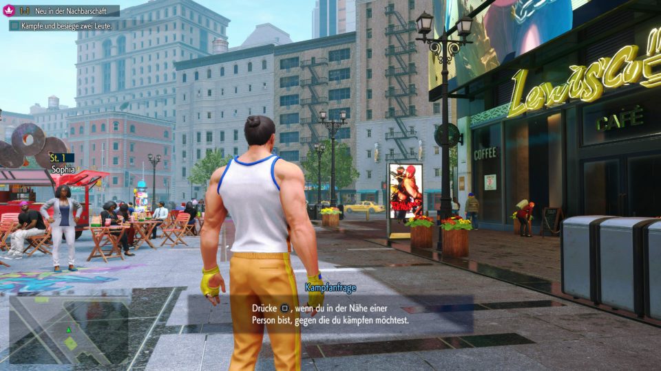 Seid ihr damit fertig startet ihr in Metro City und macht dort die ersten Kampferfahrungen bei eurem neuen Coach Luke. Der schickt euch dann in die große weite Welt. Also versteht mich nicht falsch, wir haben hier keine Open World vor uns aber Areale, in denen wir uns frei bewegen können. Hier könnt ihr nicht nur neue Kleidung oder Essen kaufen um euer Aussehen und eure Stats zu verändern, sondern auch verschiedene „Meister“ aufsuchen und so neue Kampftechniken lernen.