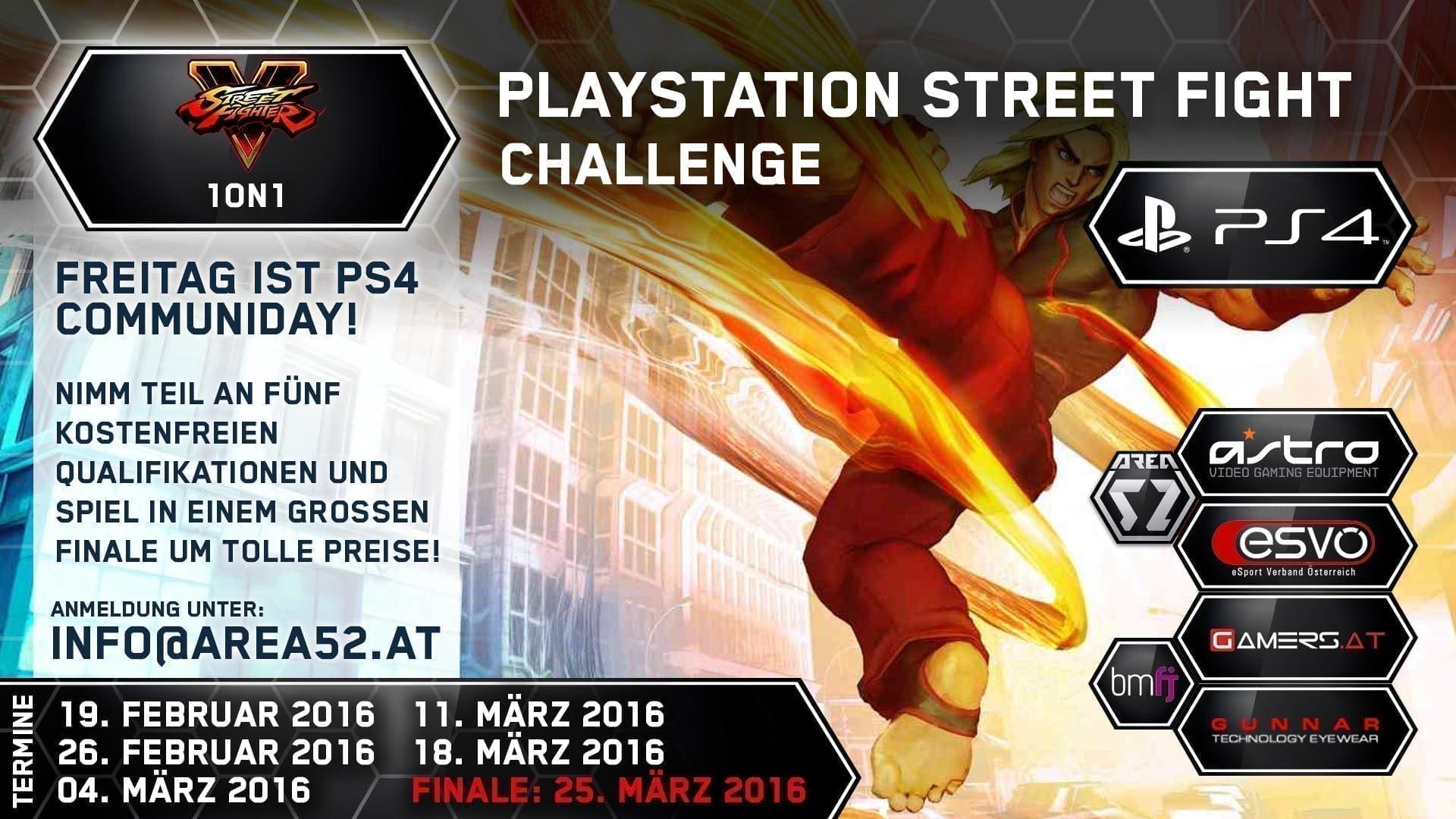 Erlebt die erste Street Fighter V Challenge in der AREA52, nutzt die Chance um euch für weitere großartige Turnier vorzubereiten. Mitte Februar starten die Veranstalter mit der sechswöchigen Challenge. Sei einer von acht Spielern die sich bis zum Finale durchkämpfen.