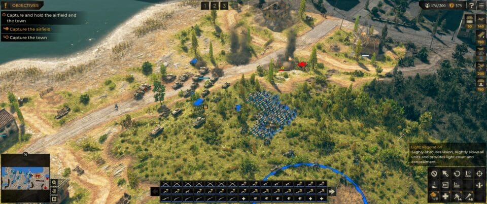 Die aktuelle Konkurrenz ist recht überschaubar – Company of Heroes 3 spielt sich ein wenig anders und deutlich flotter (und kam bei der Kritik nur mäßig gut an), auch Steel Division: Normandy 44 kann man nur bedingt mit Sudden Strike 5 vergleichen. Blitzkrieg 3 war leider eine herbe Enttäuschung. Kurz – es gibt derzeit wenig neue Konkurrenz für Sudden Strike 5.