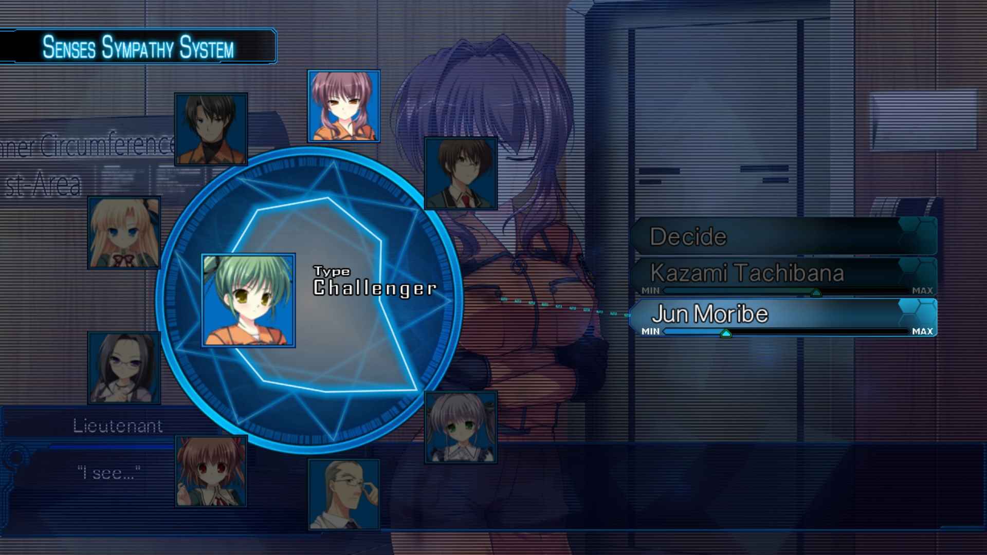 Ein essentieller Teil des Spiels ist das „Senses Sympathy System“. Während der gesamten Spielzeit müssen Spieler nicht nur ihren Eindruck (Senses) von jenen Charakteren anpassen, welche sie während ihres Abenteuers antreffen, sondern zugleich ihren Eindruck vom eigenen Hauptcharakter. Dies wird mittels eines Schiebereglers zu verschiedenen Zeitpunkten im Spiel gelöst.