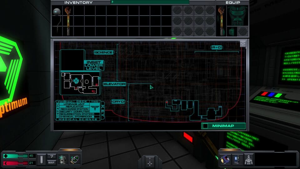 Grafisch schaut das Spiel (fast) aus wie bei Erscheinen im Jahr 1999. Wer detaillierte moderne 3D Grafiken sucht, ist hier fehl am Platz. Allerdings war die 3D Grafik im Jahr 1999 nicht mehr ganz so rudimentär als noch bei den ersten wirklich guten 3D Klassikern wie beispielsweise Ultima Underworld oder auch beim Vorgänger System Shock aus dem Jahr 1994. System Shock ist ein fantastisches, richtungsweisendes Spiel, aber die Grafik des Originals (auch in der Enhanced Edition) ist doch ein wenig in die Jahre gekommen – hier würde ich dringend das System Shock Remake empfehlen. Das originale System Shock 2 kann man jedoch auch heute noch spielen. Der Kopf hinter dem Spiel, Ken Levine, hat übrigens als nächstes größeres Projekt das Spiel Bioshock produziert.