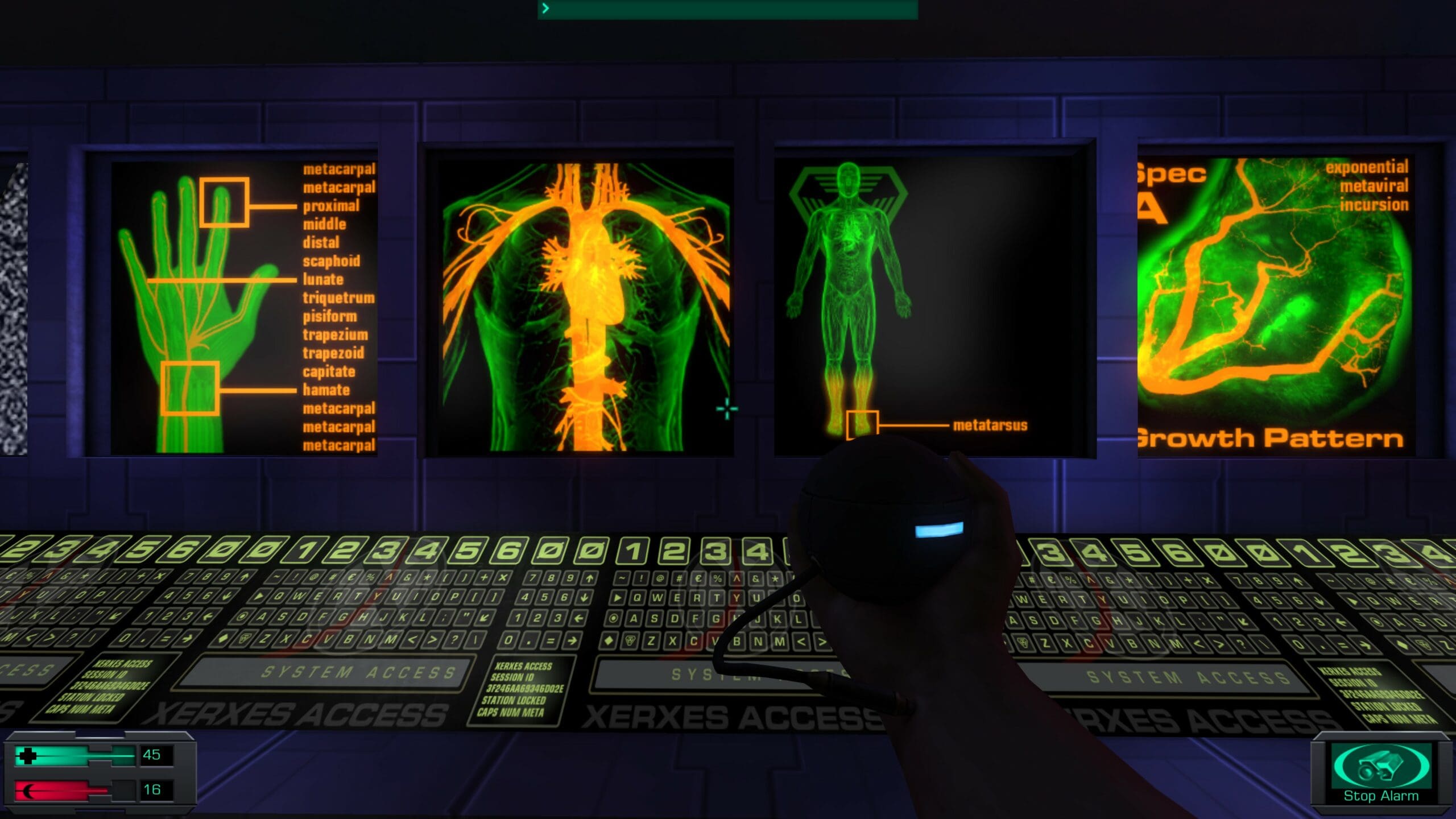 Das Gameplay ist vielseitig – Leichen nach nützlichen Gegenständen durchsuchen, versperrte Türen öffnen, durch enge Gänge kriechen, an den Upgrade-Terminals (sofern genug Upgrade-Module vorhanden) unsere Fähigkeiten verbessern. Wir erforschen neue Gegenstände, hacken Schlösser und andere Geräte in einem Minispiel, deaktivieren Sicherheitskameras (am besten mit einem großen Schraubschlüssel), bewegen Gegenstände mit unseren PSI-Fähigkeiten zu uns… und kämpfen mit uns unfreundlich gesinnten Kreaturen.