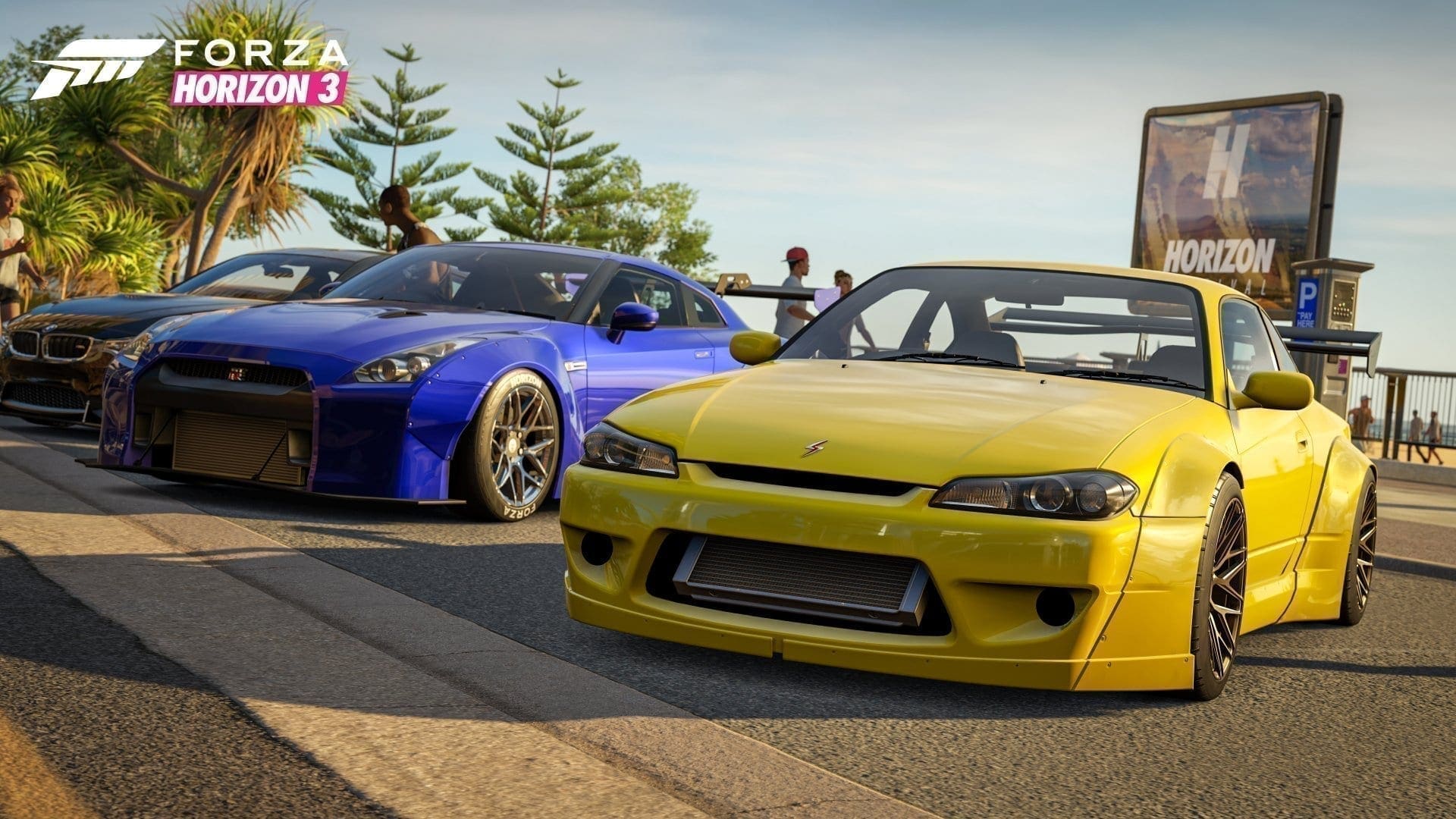 Eben dieses (Australien) ist übrigens eine in meinen Augen wirklich toll gewählte Kulisse für Forza Horizon. Der ja schon in der Realität sehr abwechslungsreiche Kontinent bietet auch im Spiel eine große Bandbreite von Settings: tiefgrüne Urwälder, das staubige Outback, schillernde Küstenstädte mit tiefen Häuserschluchten und kilometerlangen Stränden und so weiter und so fort. Und so breit das Spektrum an befahrbaren Umgebungen ist, so mannigfaltig ist freilich auch die Autoauswahl: Von brachialen Hypercars wie dem das Cover zierenden Lamborghini Centinario, über klassische Tuningkarren aus allen Herren Länder bis hin zu Gelände-Monstern und den sehr australischen Pickups ist alles vertreten, was man sich nur wünschen kann. 350 sind es zum Start – dass es durch DLCs bald noch mehr werden ist so sicher wie das Amen in der Kirche. Das sollte reichen … ebenso übrigens wie die Tuningmöglichkeiten, die man nun hat. Immerhin wurden diese ebenfalls erweitert: neben eigentlich fast schon pervers vielen Tönen für die Hupe können nun nämlich auch Breitbauten montiert werden… also echte – nicht nur die aufgemalten manch sehr kreativer Painter aus Teil 2.