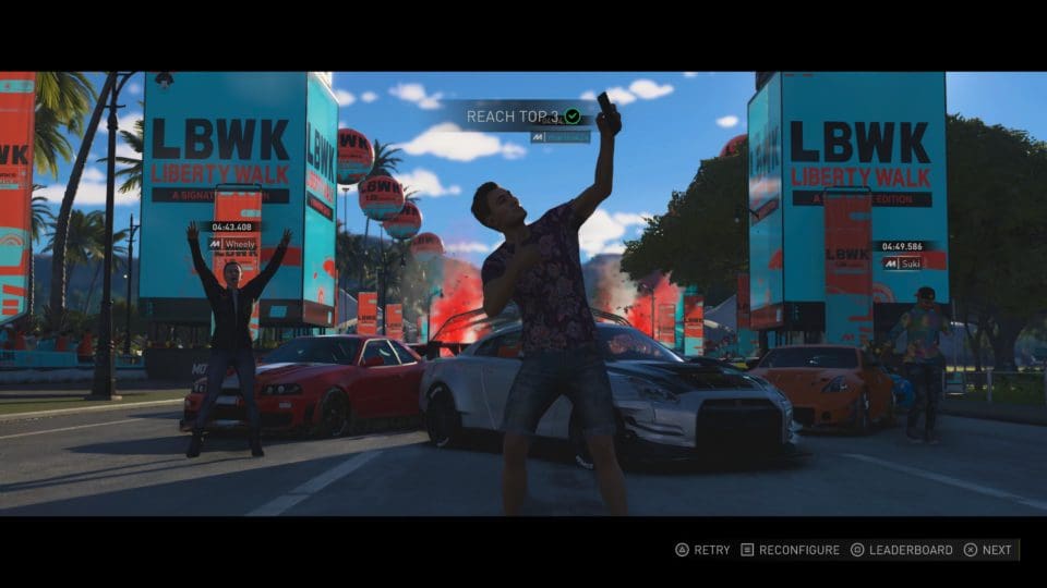 Neben diversen Challenges in der Open-World wie z.B. Radarfallen auslösen oder Fotos mit bestimmten Autos an besonderen Orten zu machen gibt es nämlich noch die Live Events und die haben es wirklich in sich. Driftwettbewerbe, Dragster, Formel-1-Rennen oder Wettbewerbe in denen nur E-Autos erlaubt sind und das ist noch lange nicht alles. Ihr könnt bei Autoshows mitmachen bei denen online von anderen Spielern gevotet wird. Habt ihr den heißesten Schlitten und gewinnt, gibt’s massig Kohle und XP. Auch Kleidung für euren Avatar könnt ihr so freischalten. Es gibt natürlich auch Modi in denen ihr EURE Autos fahren dürft. Hier hat man dann oft nur die Vorgabe der Kategorie. Bei einem Driftwettbewerb z.B. musste es unbedingt ein Wagen der Kategorie Drift sein. Da ich hier nur einen in meiner Garage hatte, musste ich mit diesem fahren, bis ich mir einen neuen leisten konnte. Habt ihr kein passendes Fahrzeug wird euch entweder eines zur Verfügung gestellt, was dann dazu führt, dass die Rennstrecke mit den immer gleichen Autos voll ist oder ihr könnt dieses Rennen sogar erst starten, wenn ihr ein Auto besitzt, welches die Voraussetzungen erfüllt.